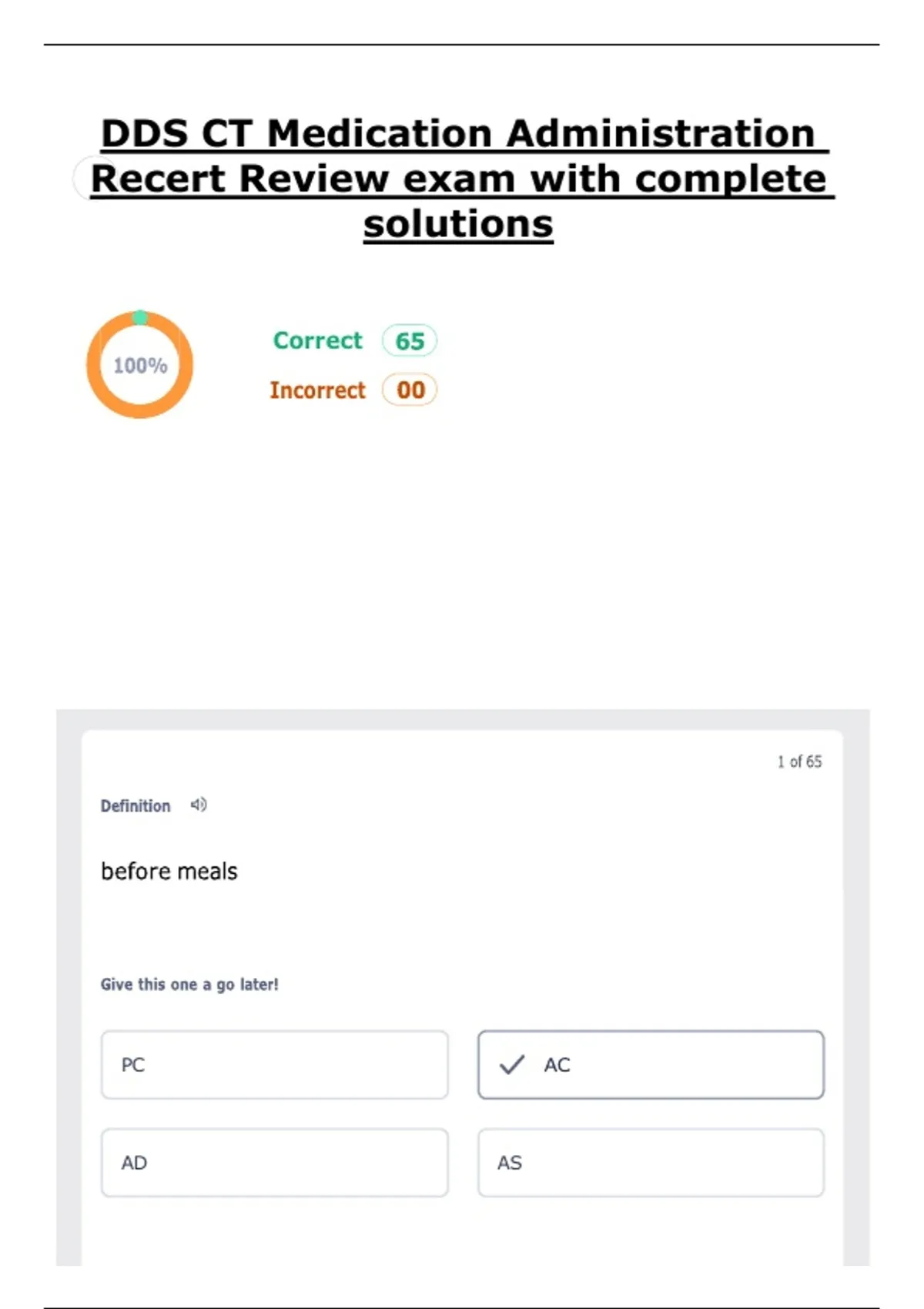 ,DDS CT Medication Administration Recert Review exam with complete solutions