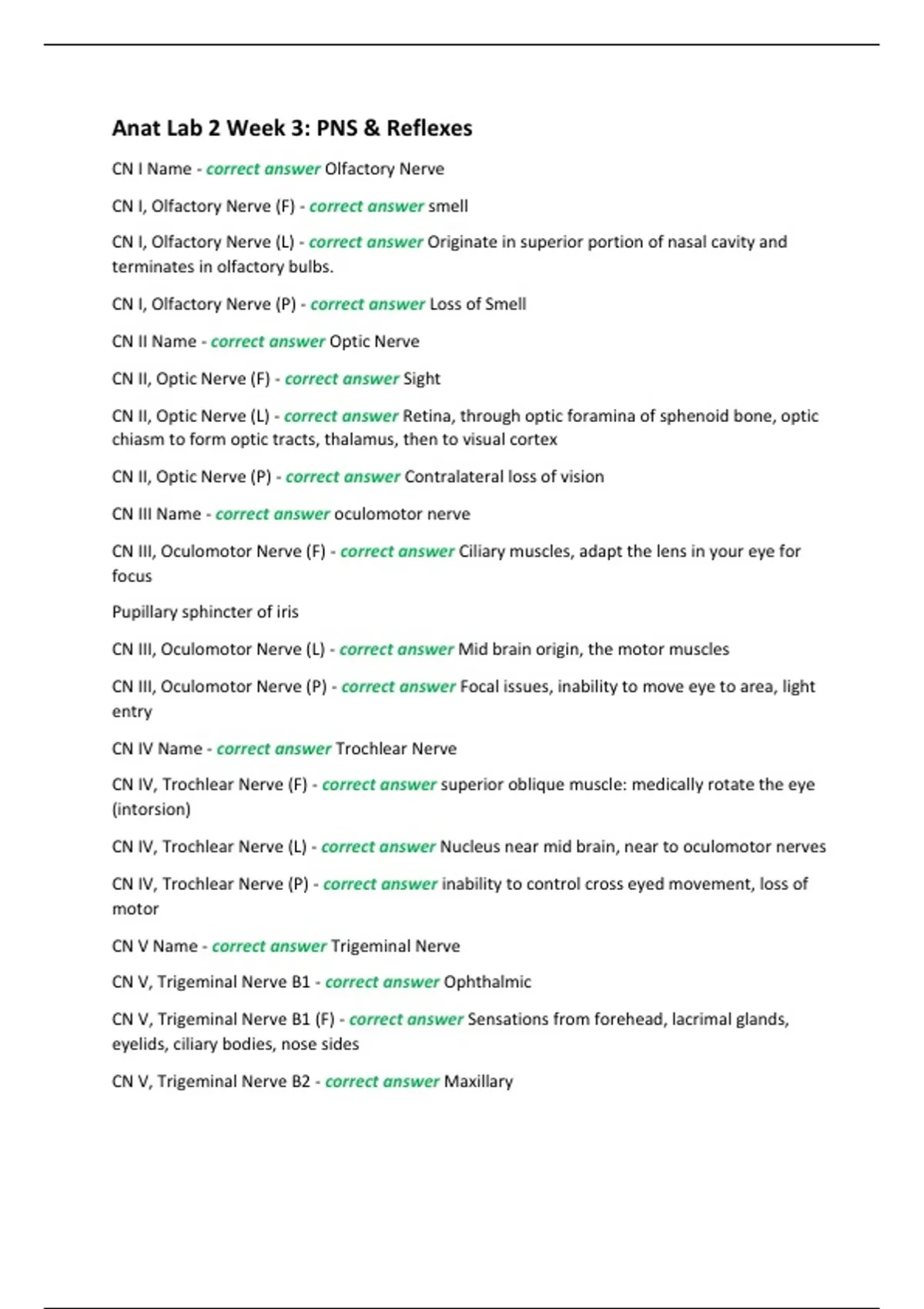 CN I Name - correct answer Olfactory Nerve