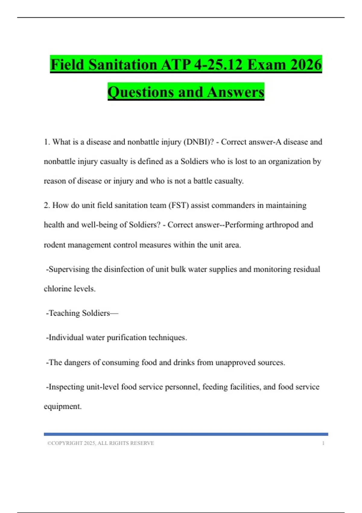 Field Sanitation ATP 4-25.12 Exam 2026