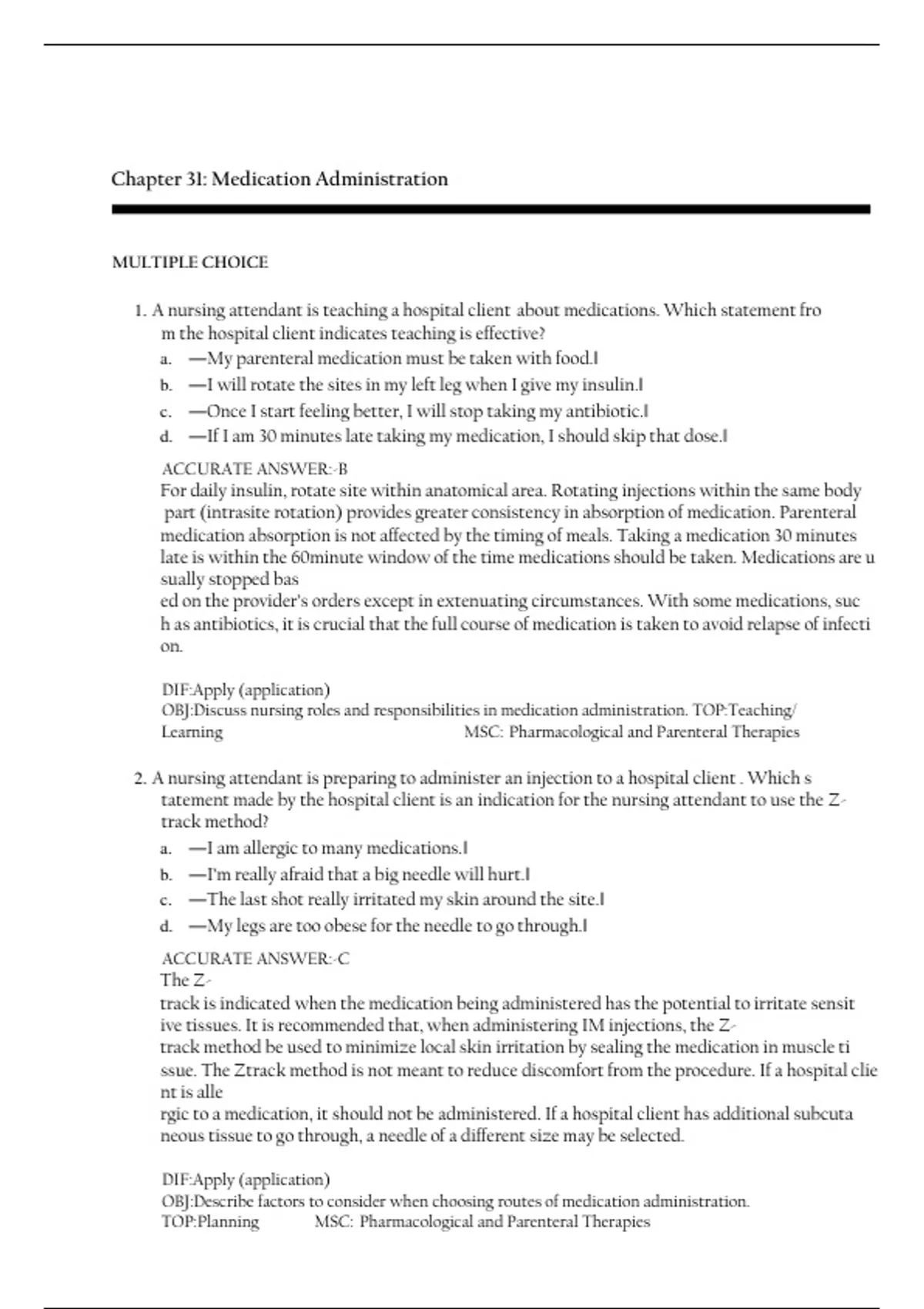TOP:Planning MSC: Pharmacological and Parenteral Therapies ra ra ra ra