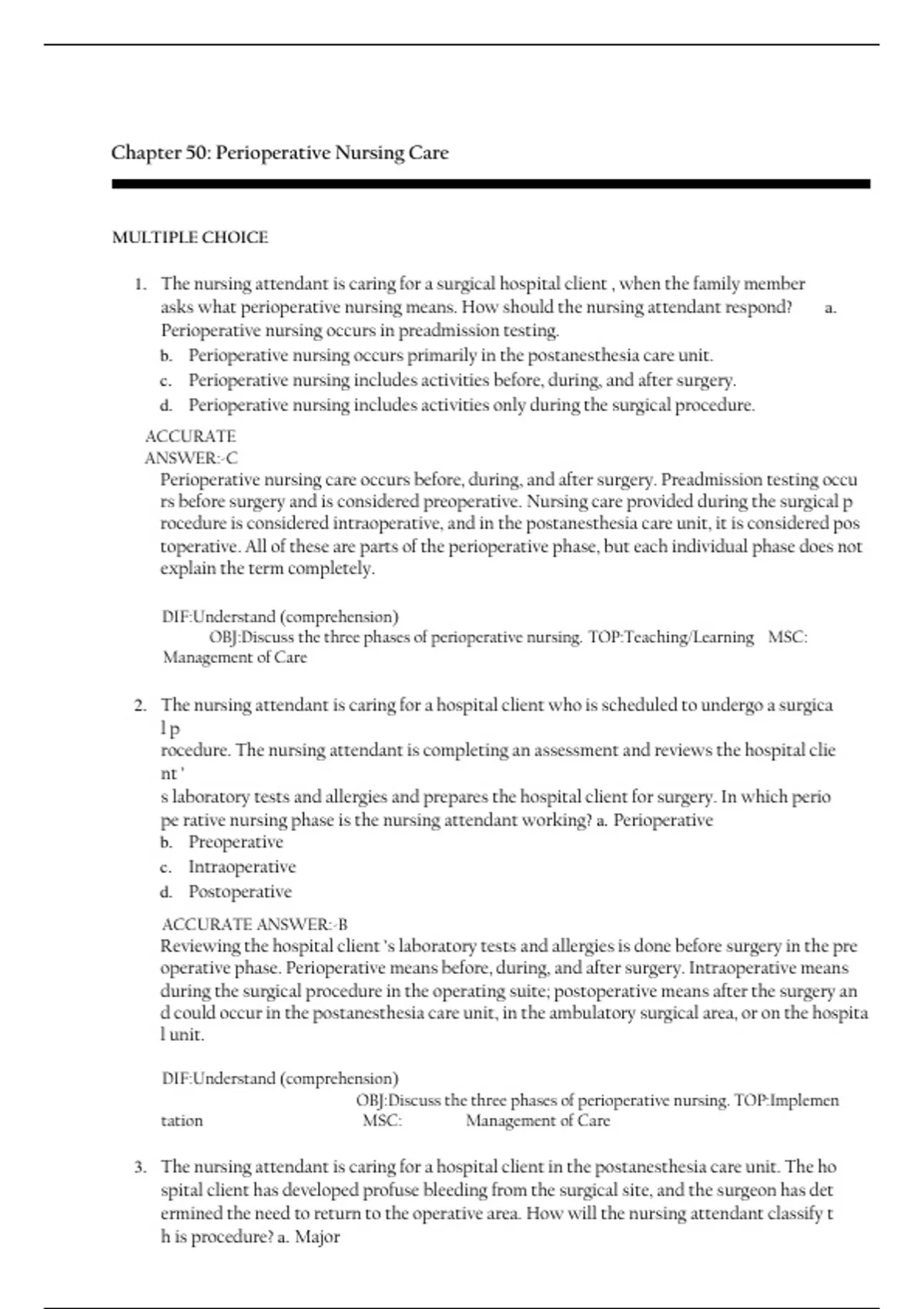 OBJ:Discuss the three phases of perioperative nursing. TOP:Implemen tation ra ra ra ra ra ra ar MSC:
