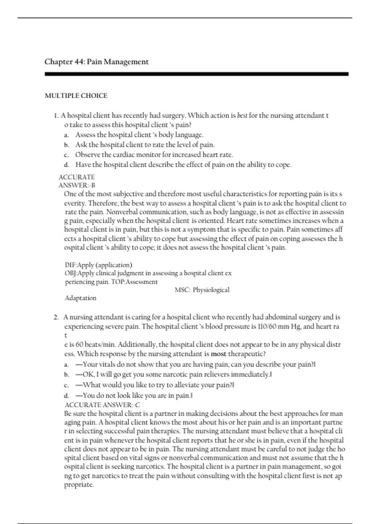 everity. Therefore, the best way to assess a hospital client ’s pain is to ask the hospital client to