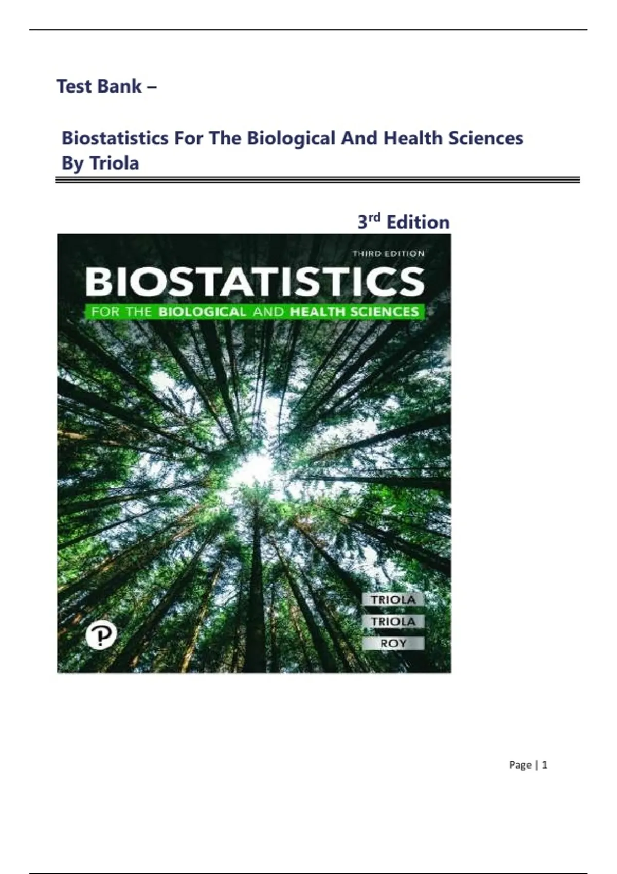 Test Bank – Biostatistics For The Biological And Health Sciences, 3rd Edition By Triola|| Verified Chapters 1-14, Newest Edition