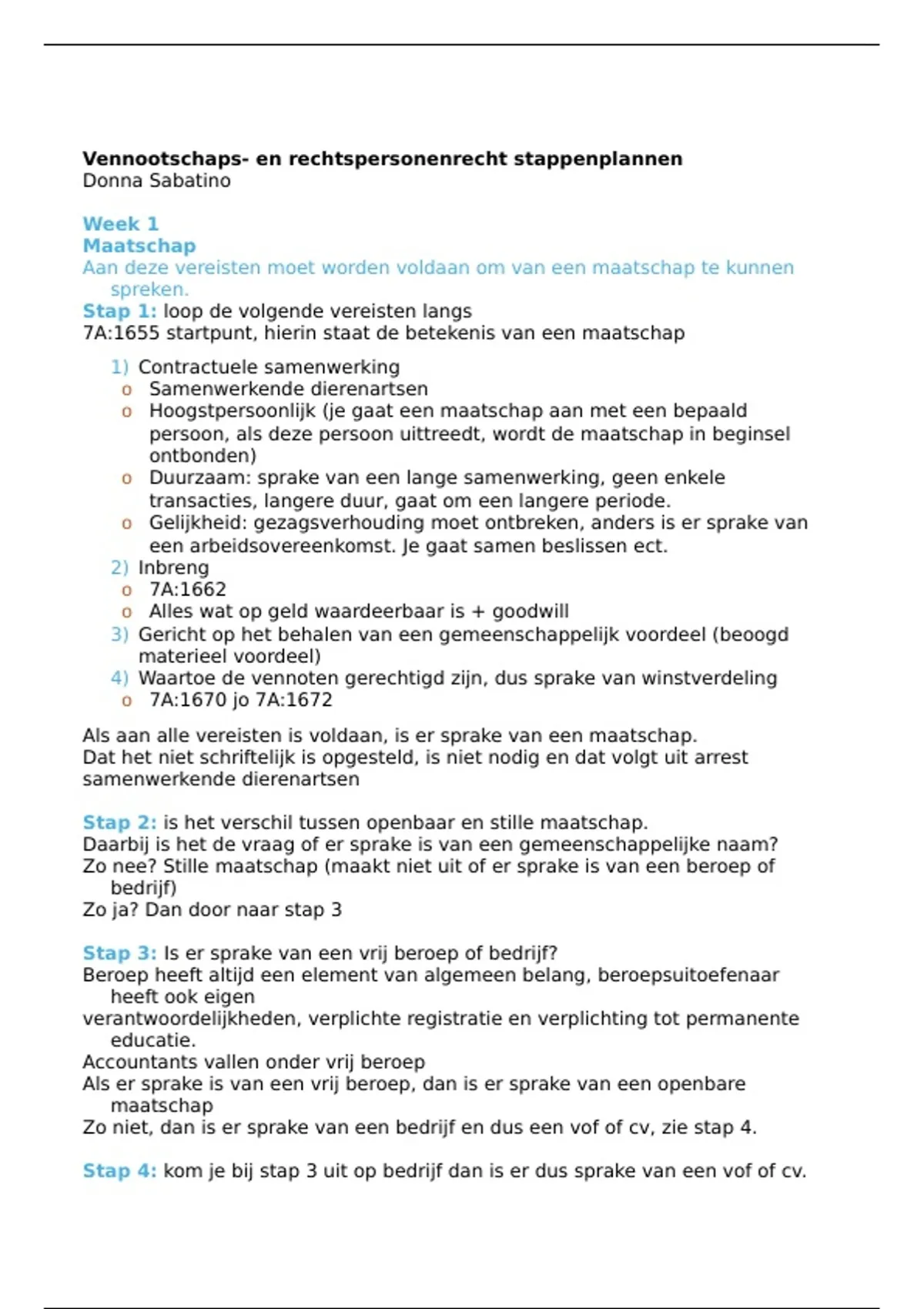 Vennootschaps- en rechtspersonenrecht stappenplannen