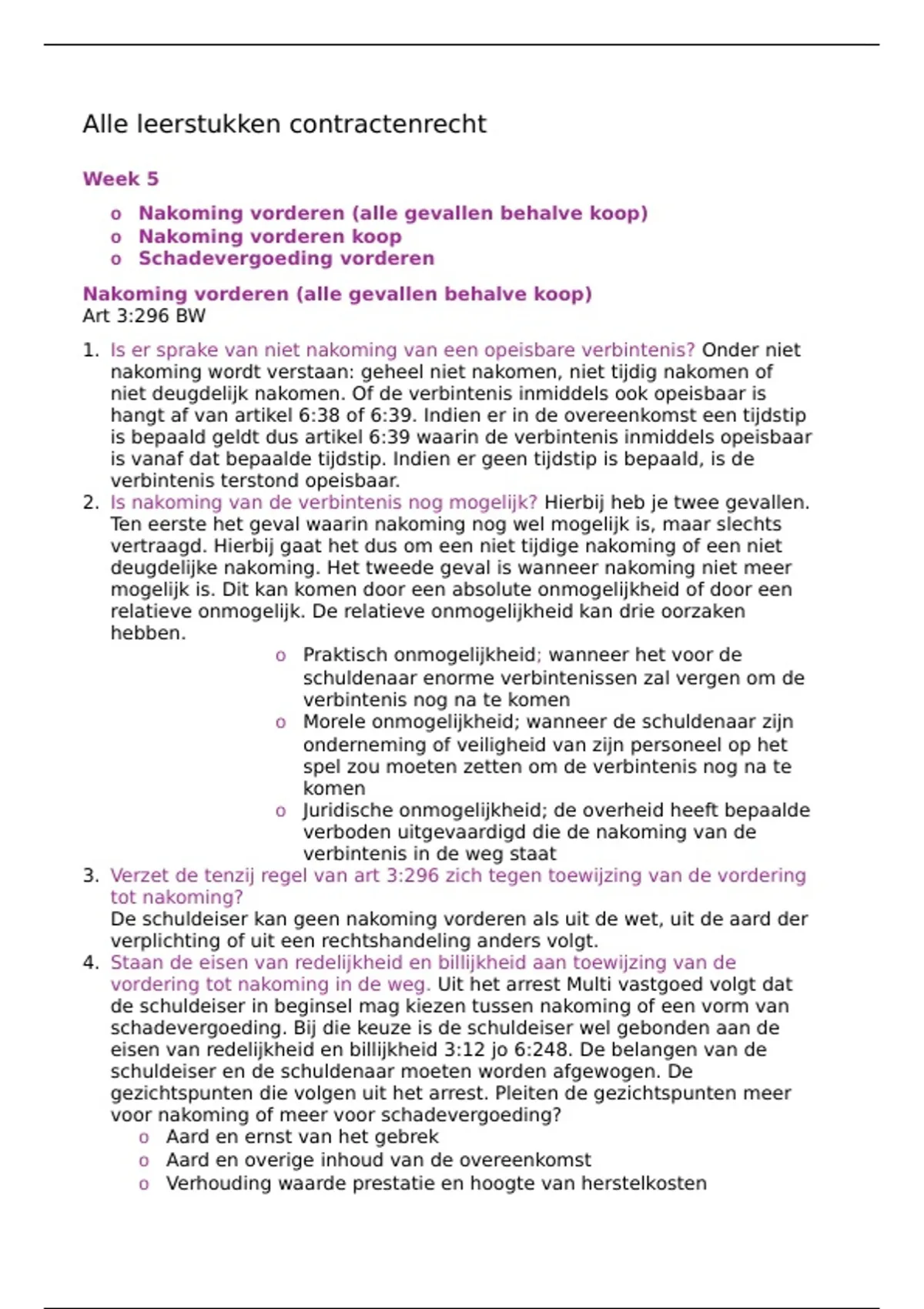 o Nakoming vorderen (alle gevallen behalve koop)