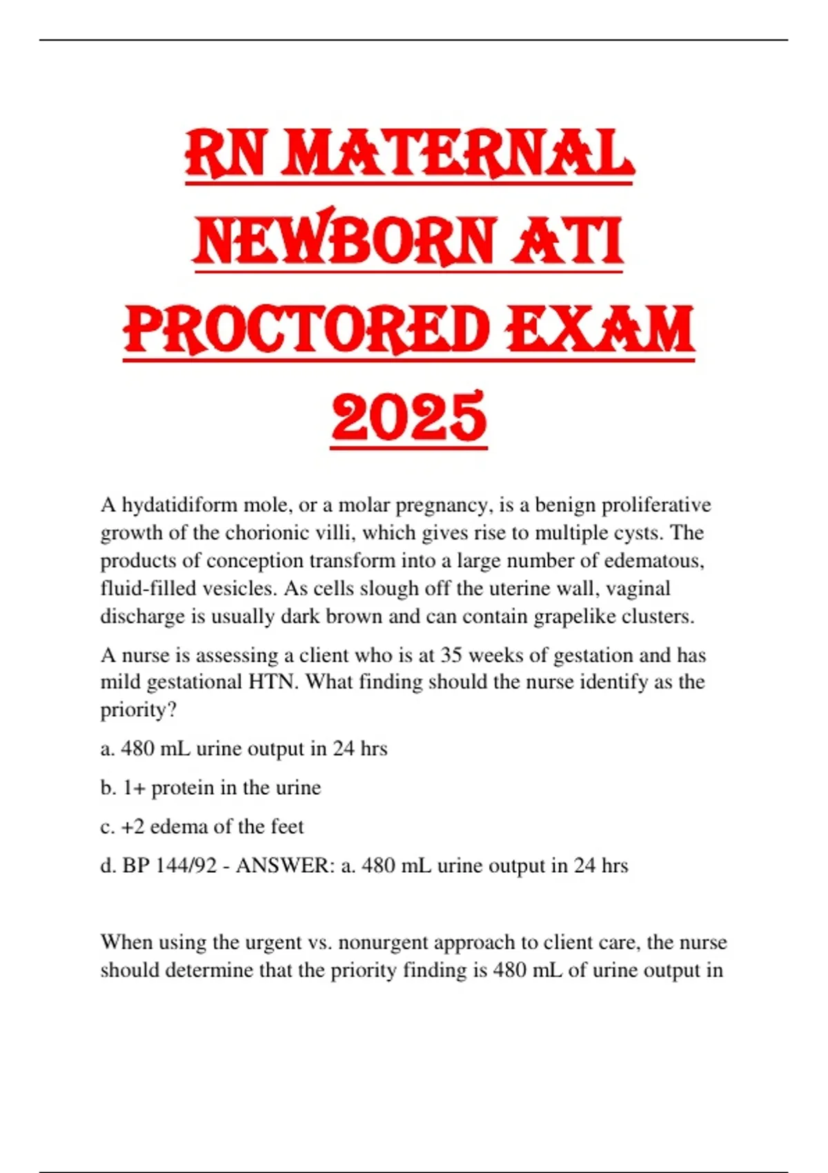 RN Maternal newborn ati proctored exam 2025 RN Maternal newborn ati proctored exam 2025