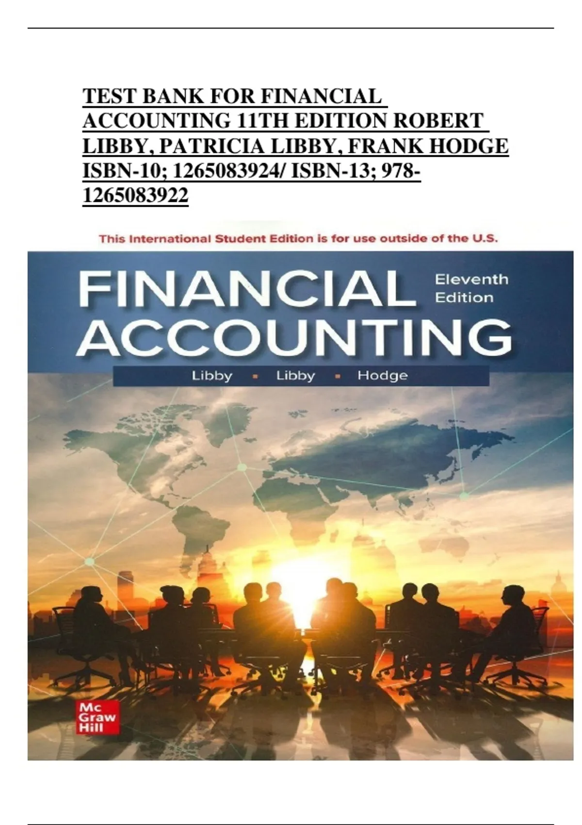 This document provides the complete test bank for Financial Accounting, 11th edition by Robert Libby, Patricia Libby, and Frank Hodge. It includes chapter-by-chapter practice questions and verified answers covering accounting principles, financial statements, transactions, assets, liabilities, equity, and decision-making in financial reporting. An essential resource for exam preparation and mastering financial accounting concepts.