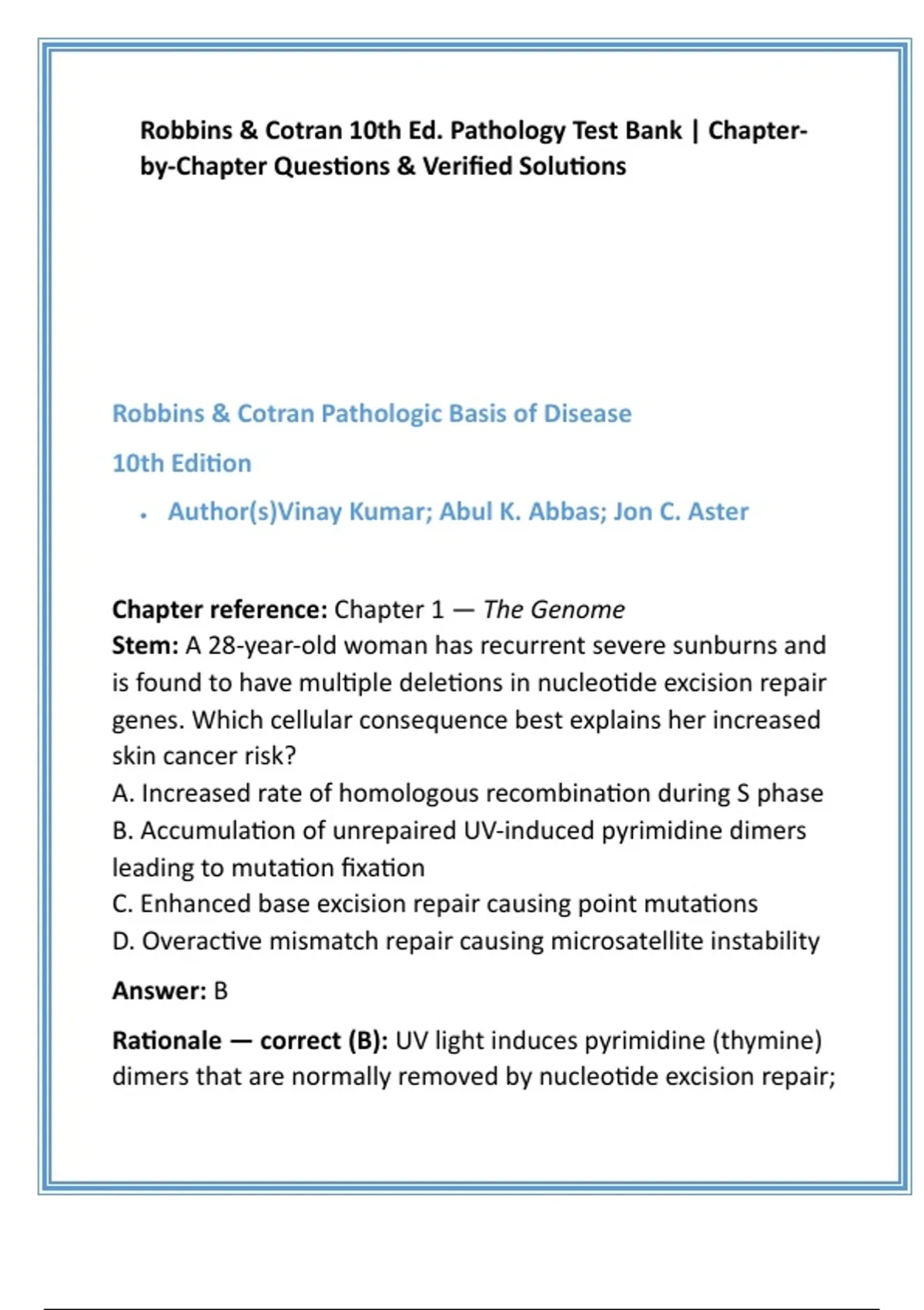 Rationale — correct (B): UV light induces pyrimidine (thymine)