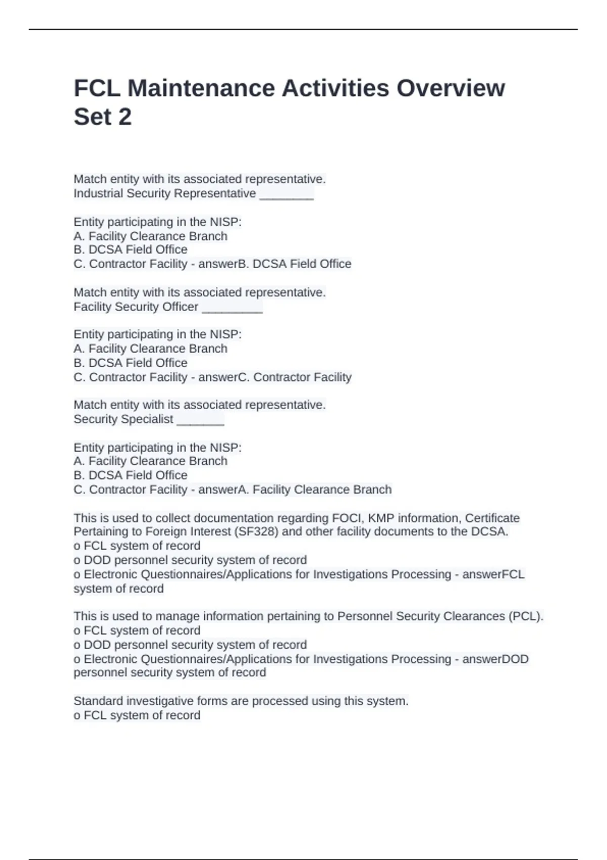 FCL Maintenance Activities Overview Set 2 Questions and Answers