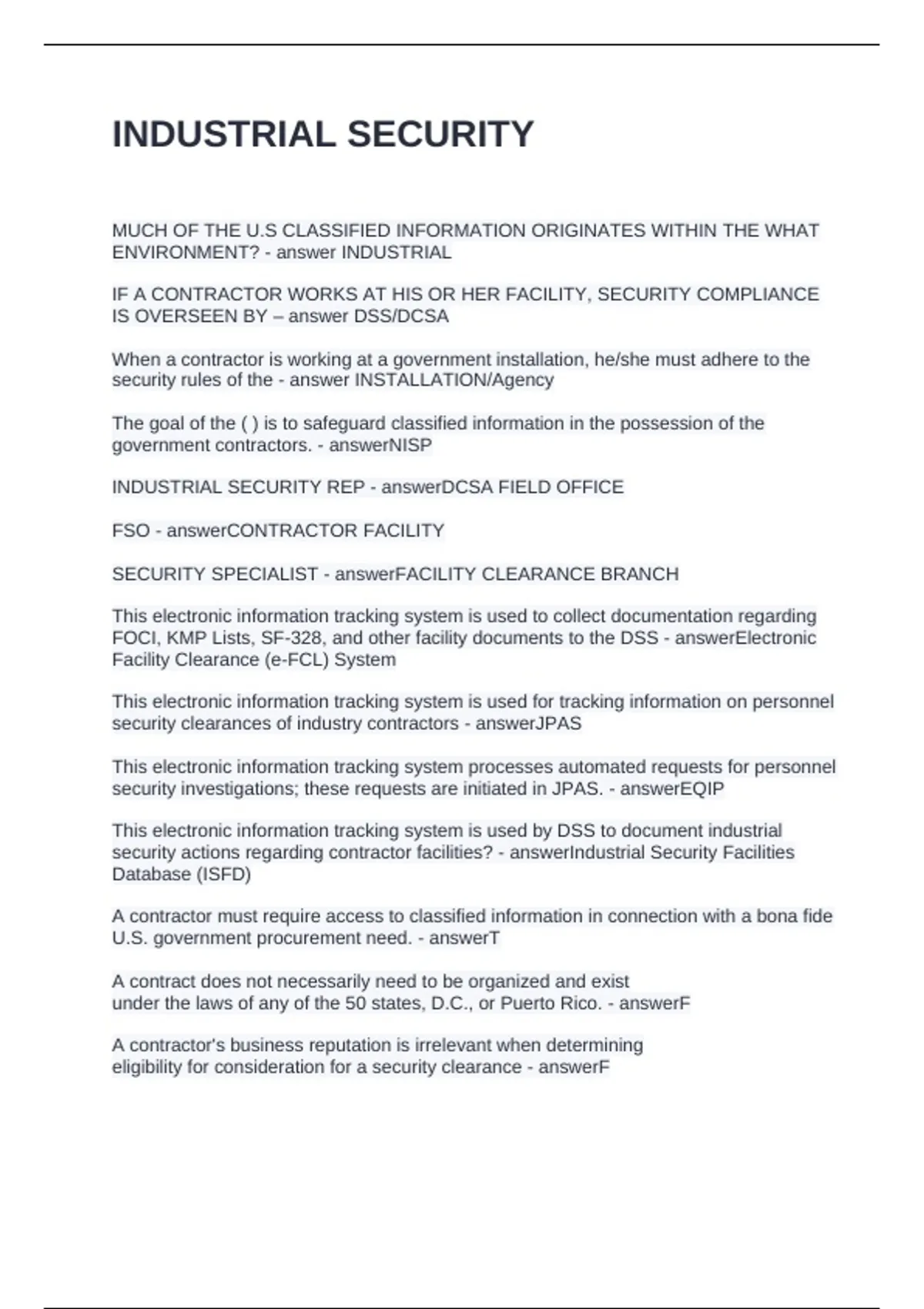INDUSTRIAL SECURITY QUESTIONS WITH CORRECT ANSWERS 2025