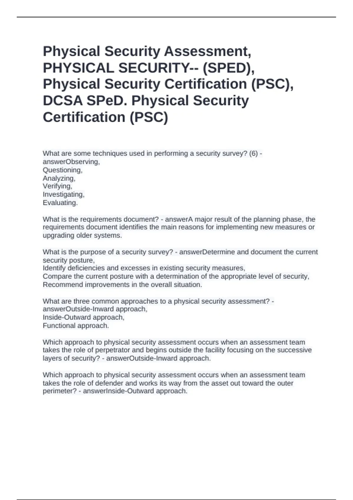 Physical Security Assessment, PHYSICAL SECURITY-- (SPED), Physical Security Certification (PSC), DCSA SPeD. Physical Security Certification (PSC) - 100% Solved