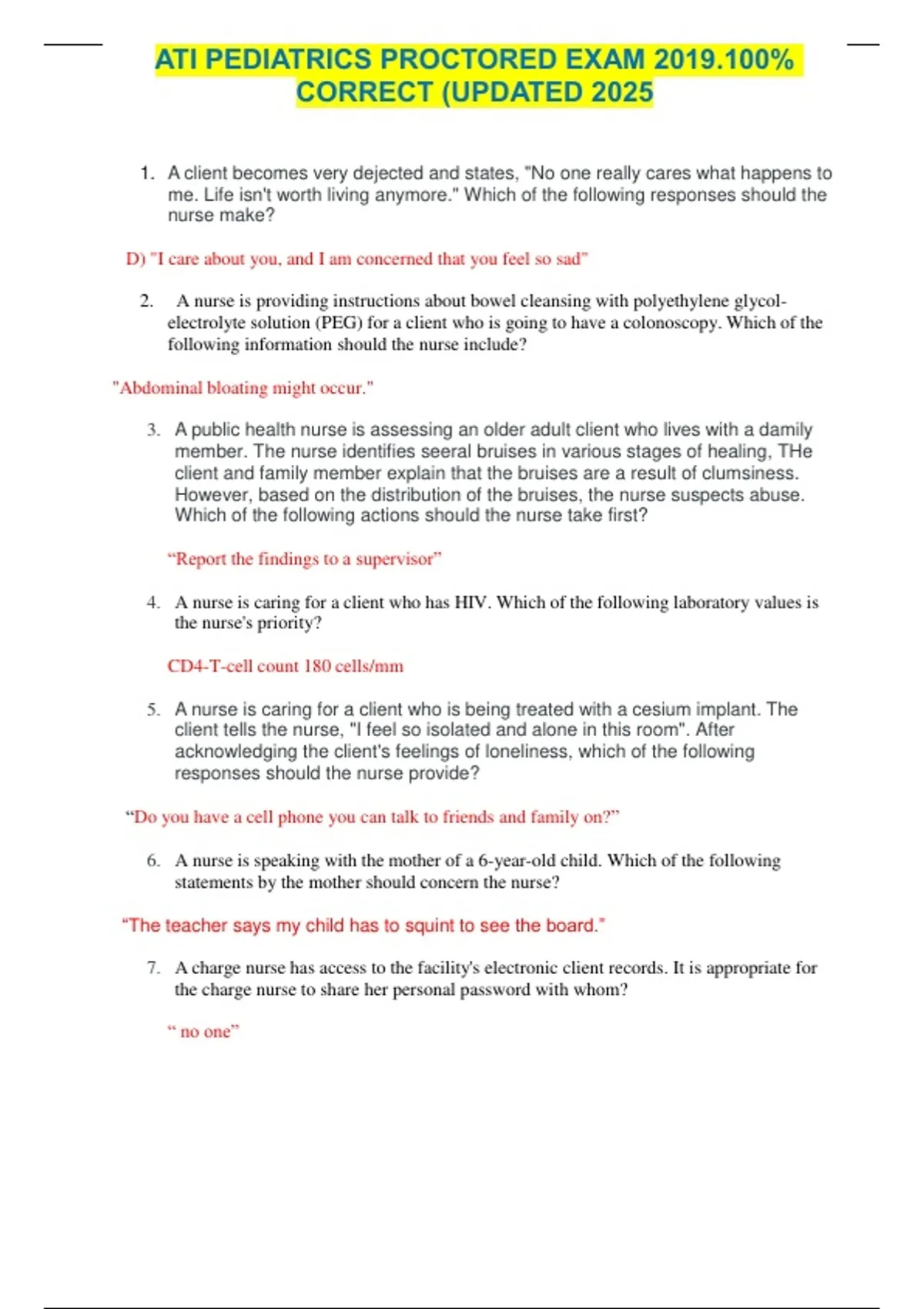 1. A client becomes very dejected and states, "No one really cares what happens to