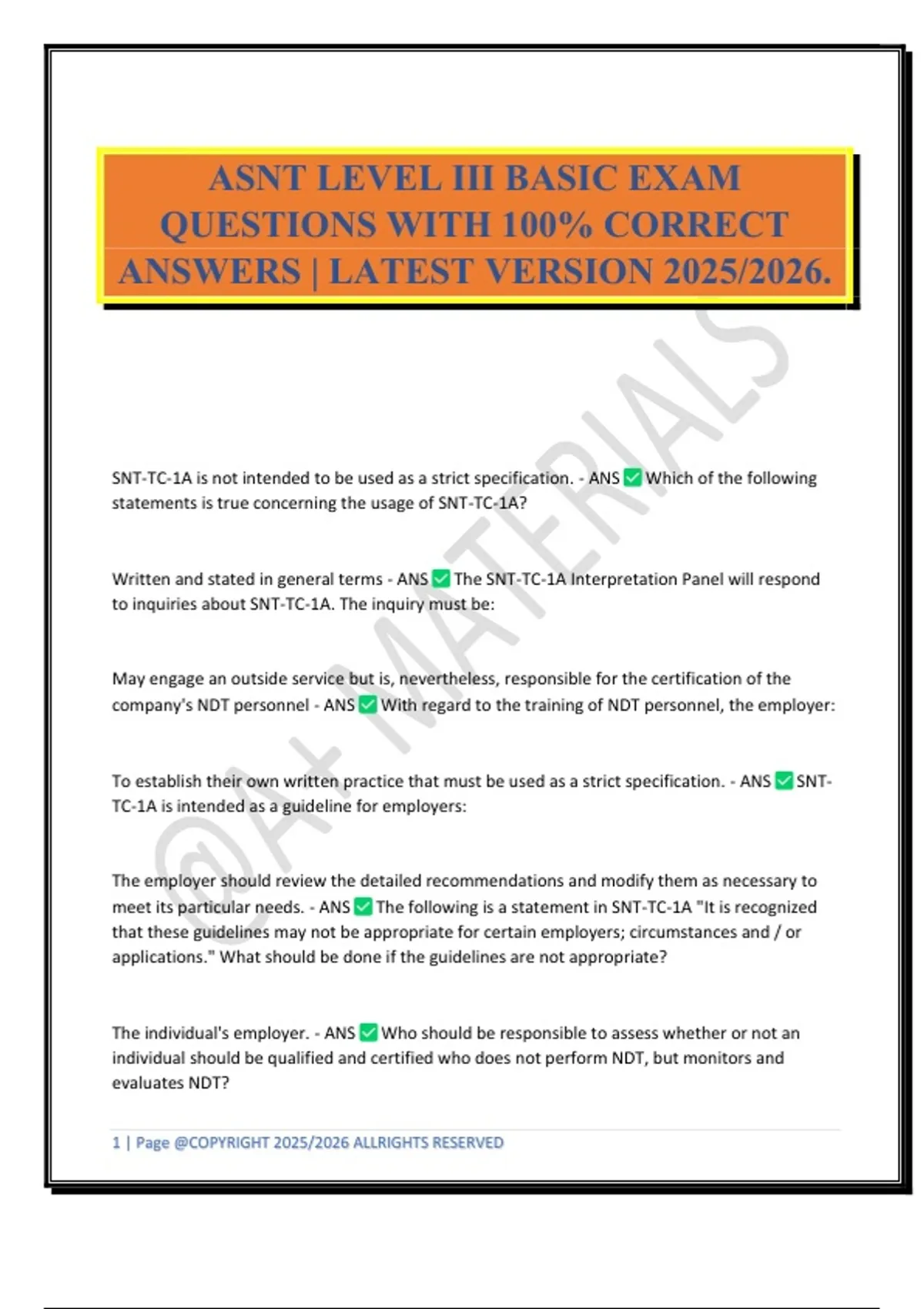 ANS According to SNT-TC-1A, which of the following is not true for a Level III?