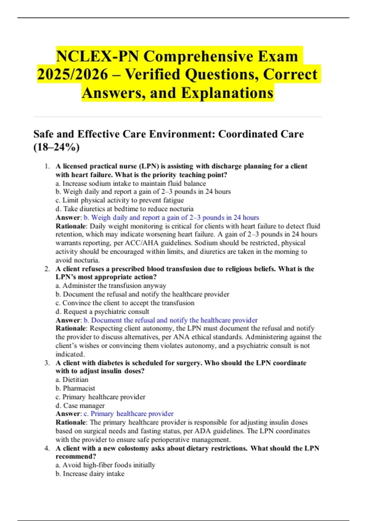 1. A licensed practical nurse (LPN) is assisting with discharge planning for a client