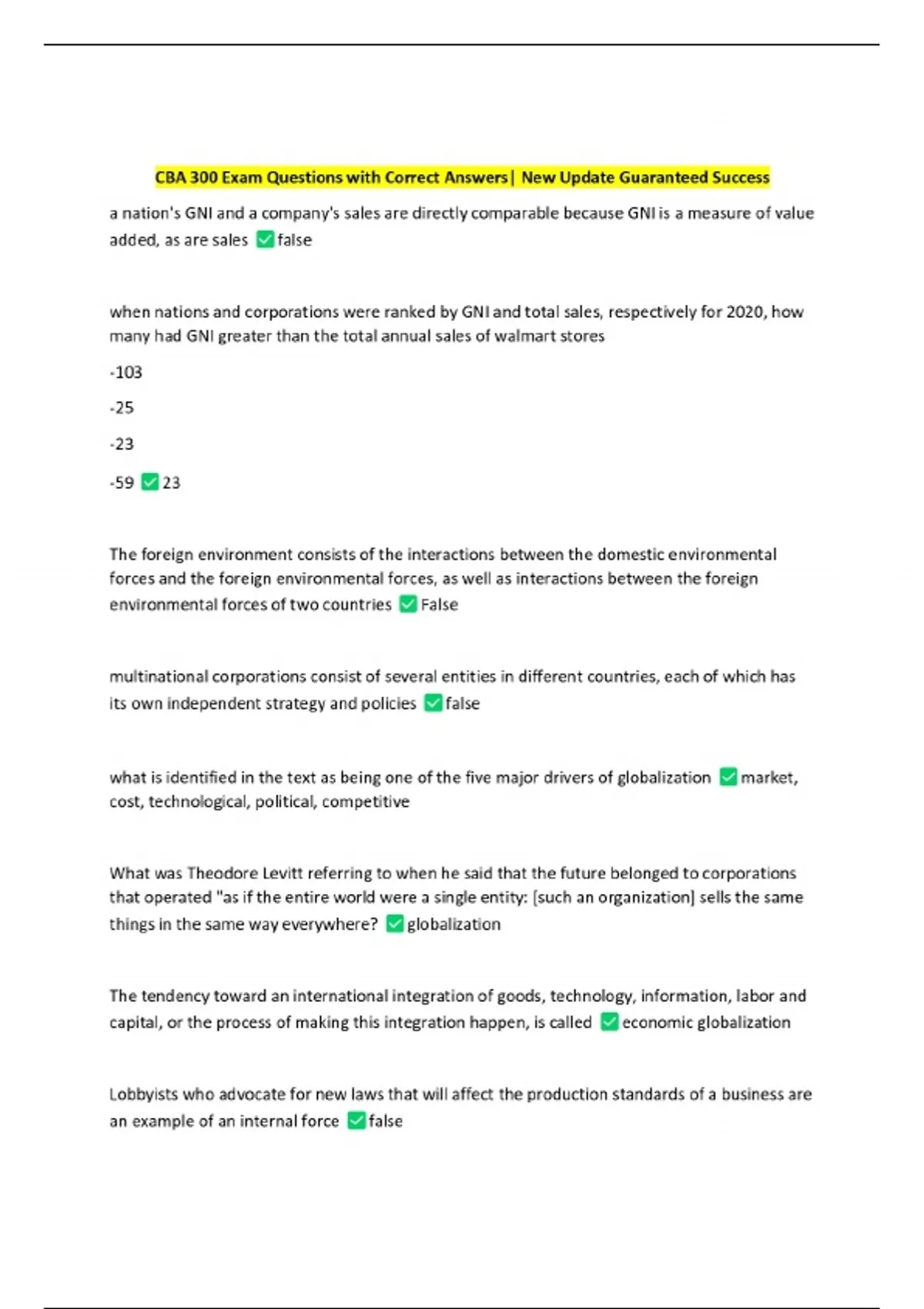 CBA 300 Exam Questions with Correct Answers| New Update Guaranteed Success