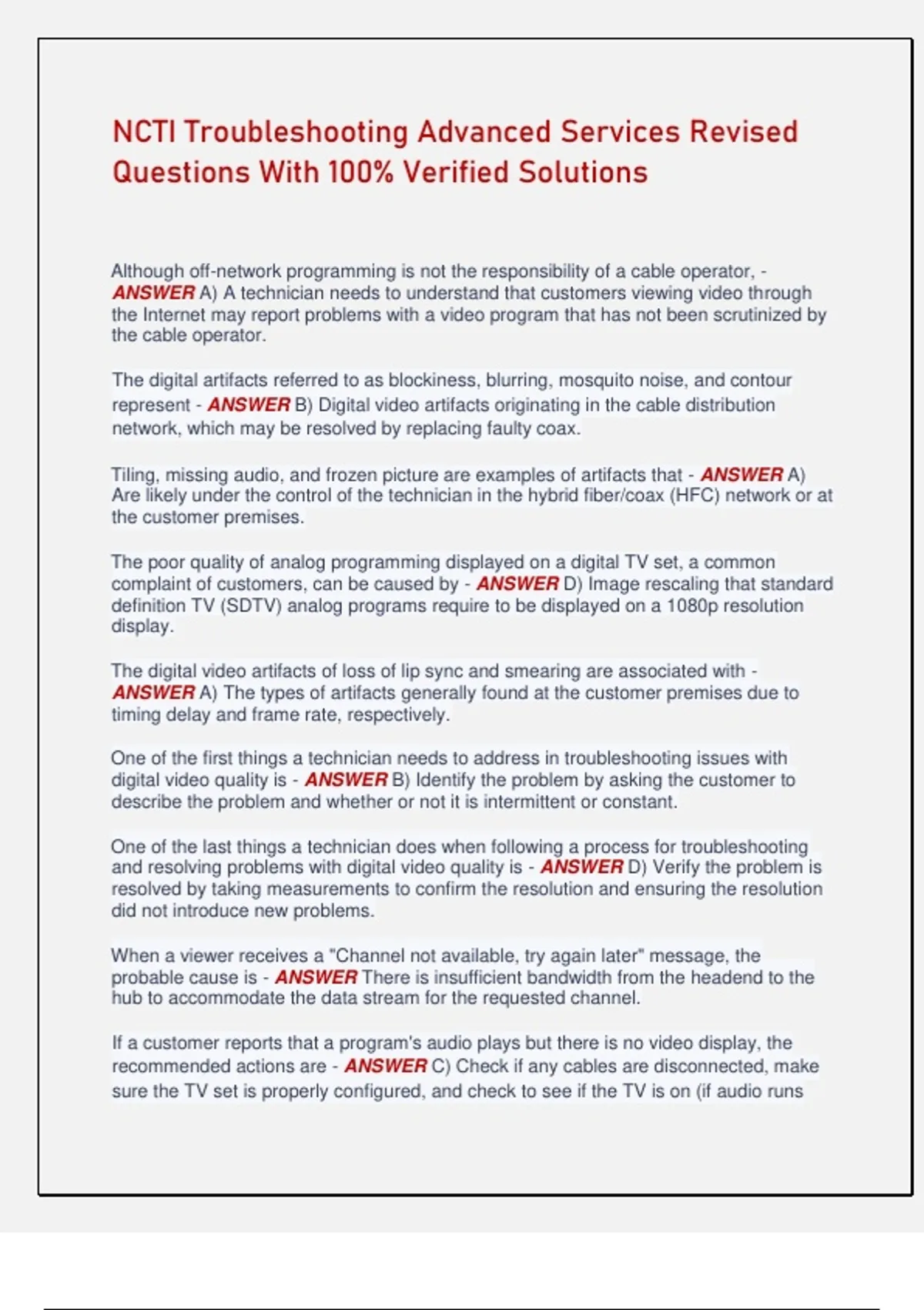 and resolving problems with digital video quality is - ANSWER D) Verify the problem is