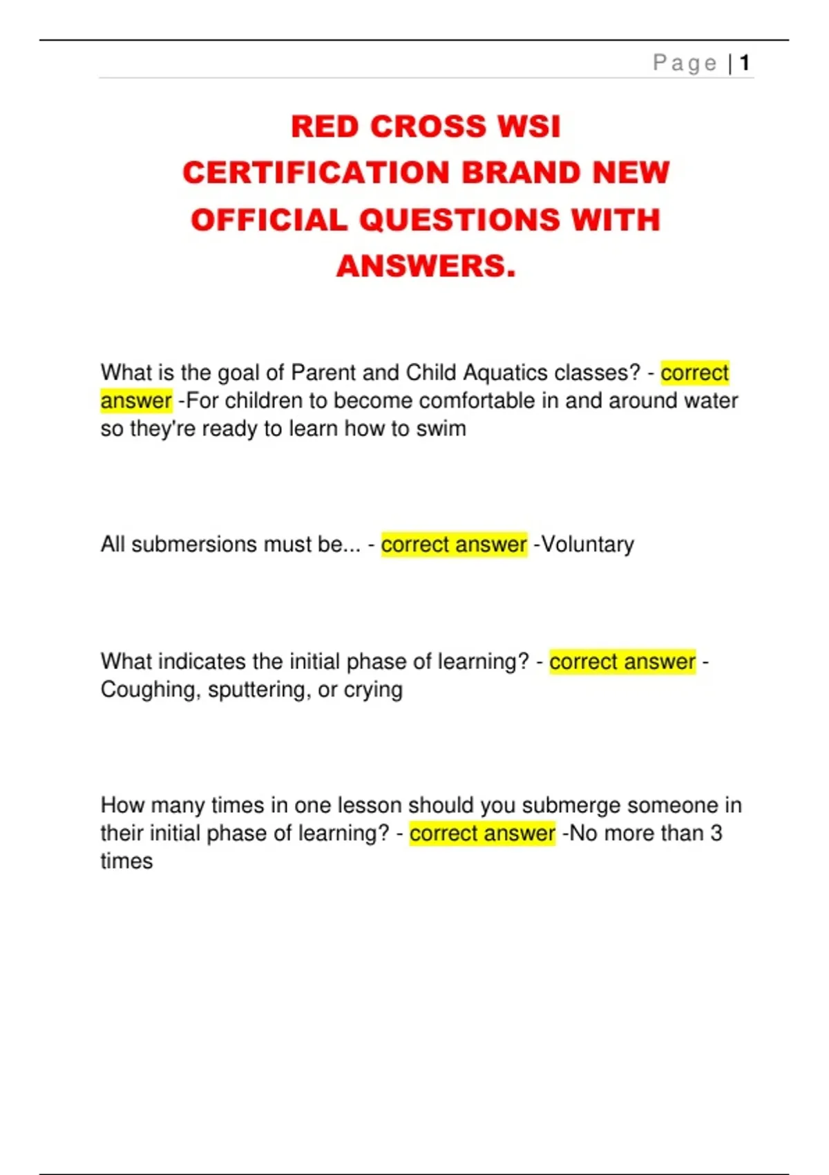 All submersions must be... - correct answer -Voluntary
