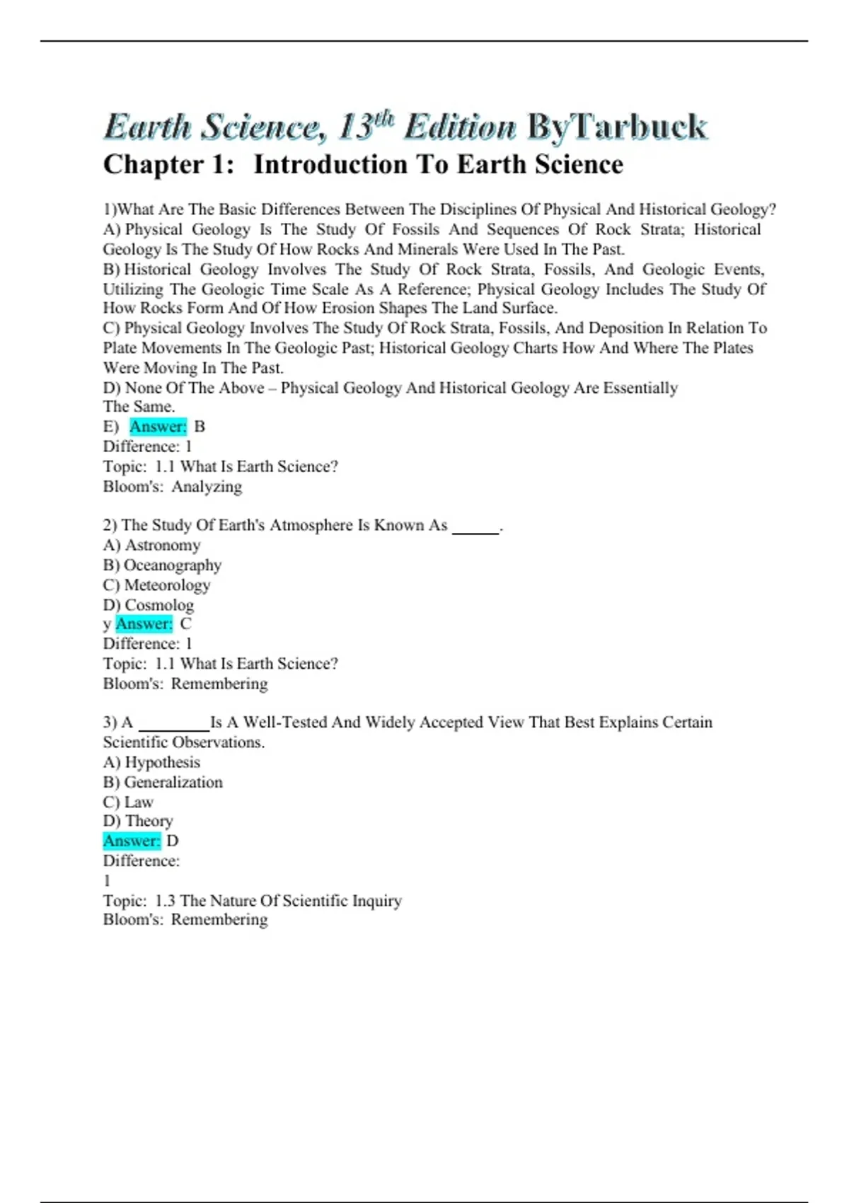 Test Bank for Essentials of Geology Earth Science, 13th Edition By Tarbuck, 2025) All Chapters Covered, Latest Guide A+.