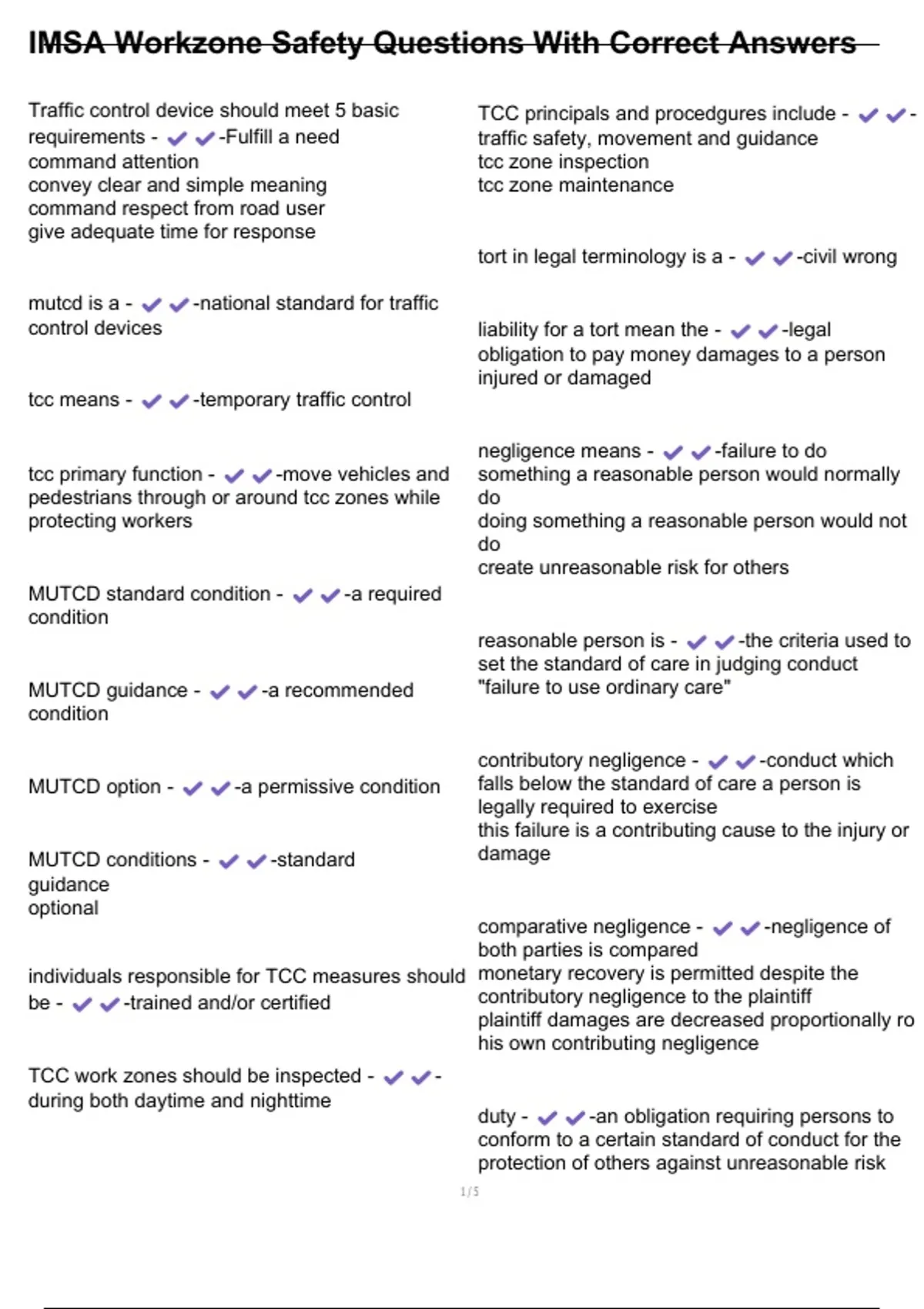 IMSA Workzone Safety Questions With Correct Answers