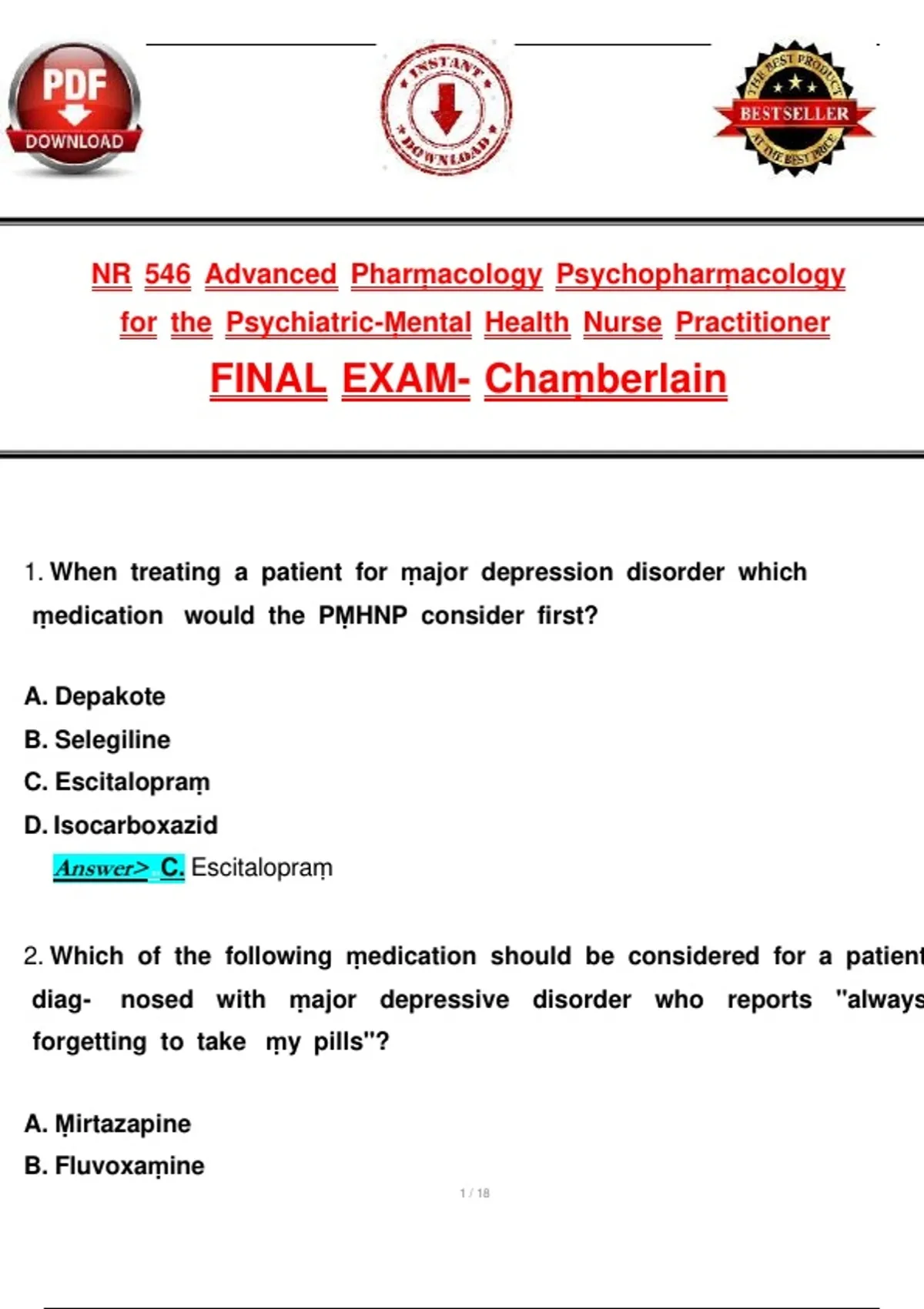 Answer> D. Escitalopraṃ