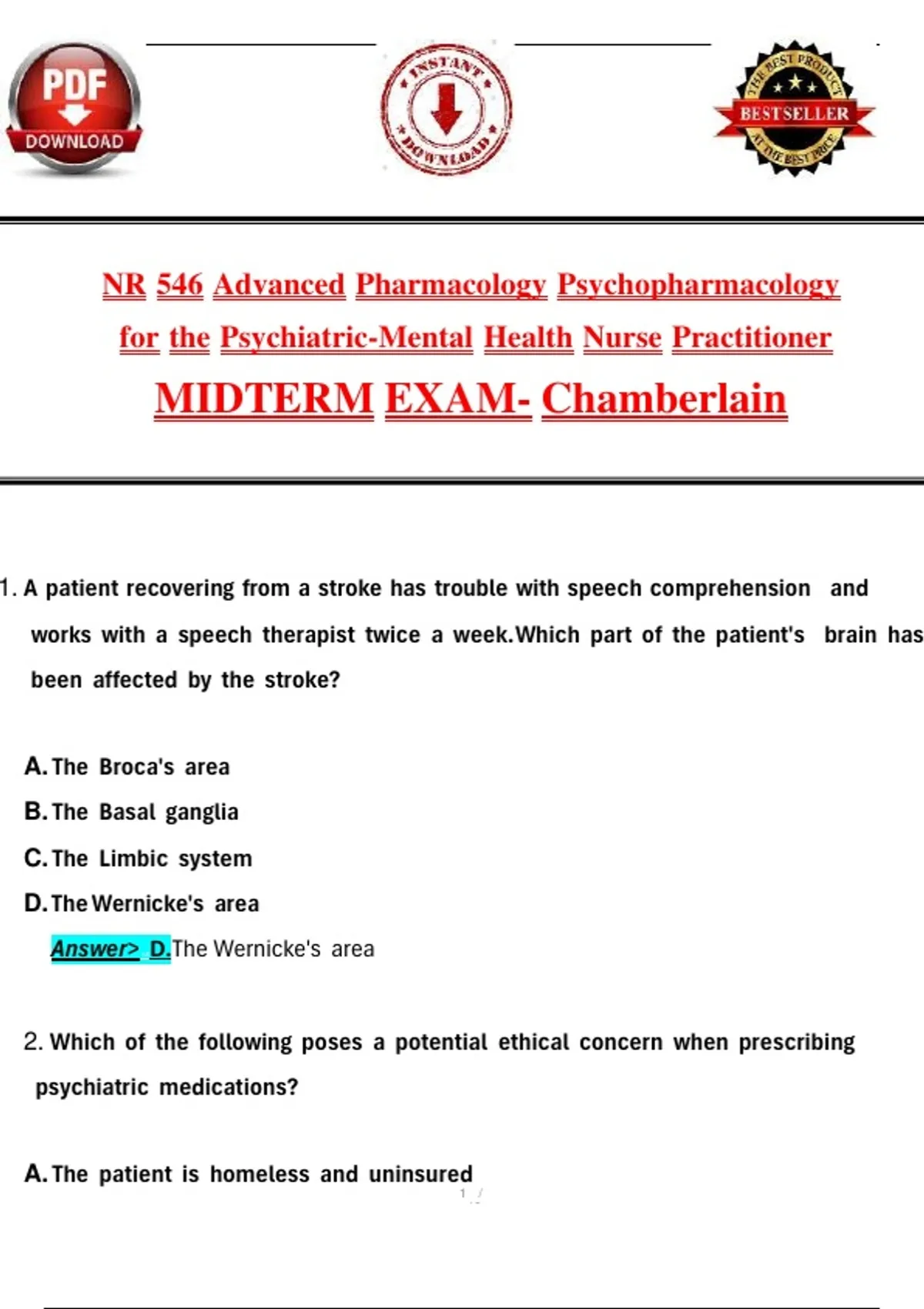 1. A patient recovering from a stroke has trouble with speech comprehension and