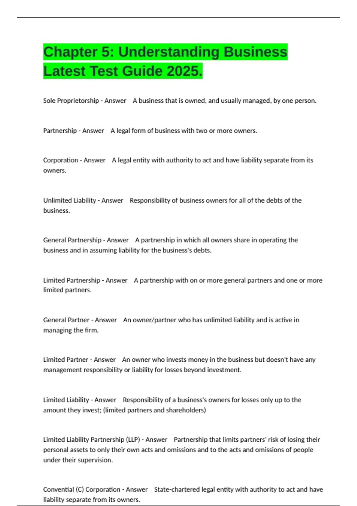 Chapter 5: Understanding Business Latest Test Guide 2025.