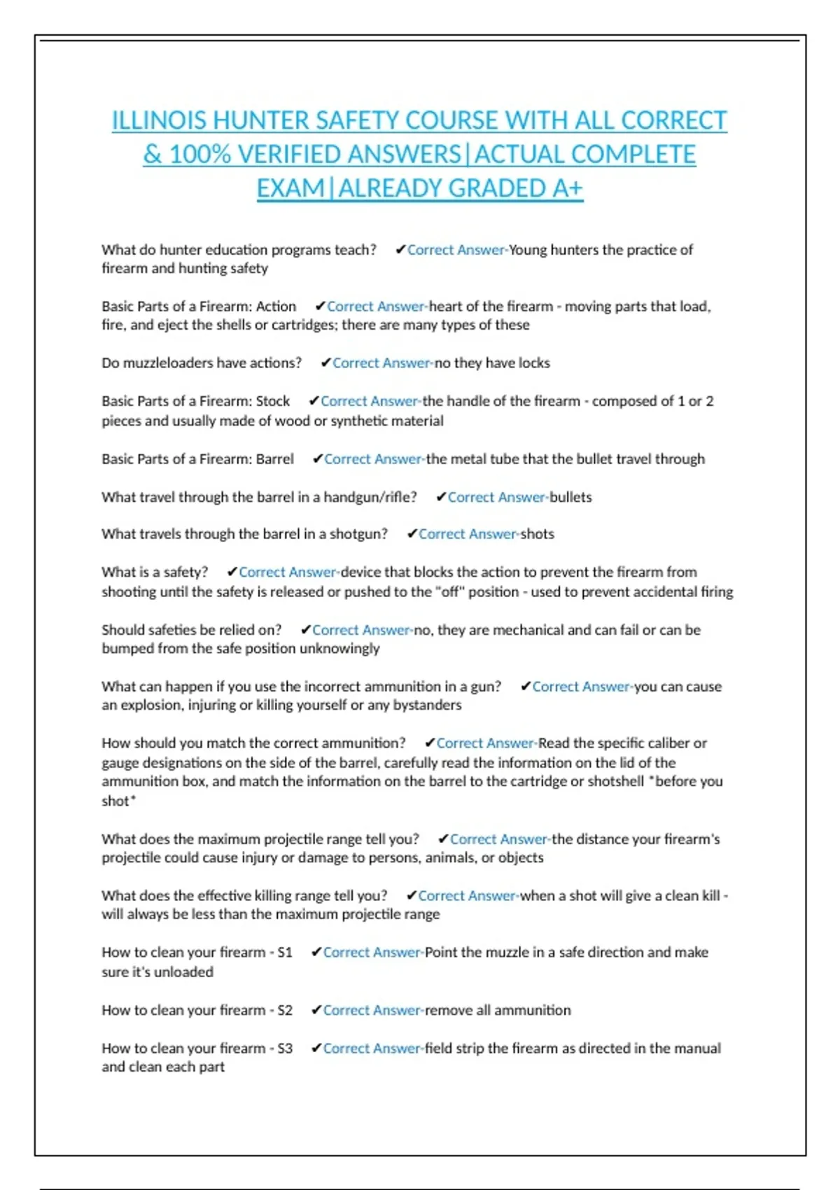 Basic Parts of a Firearm: Barrel ✔Correct Answer-the metal tube that the bullet travel through