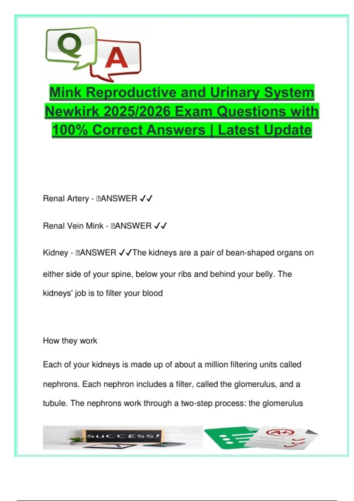 Renal Vein Mink - 🧠ANSWER ✔✔