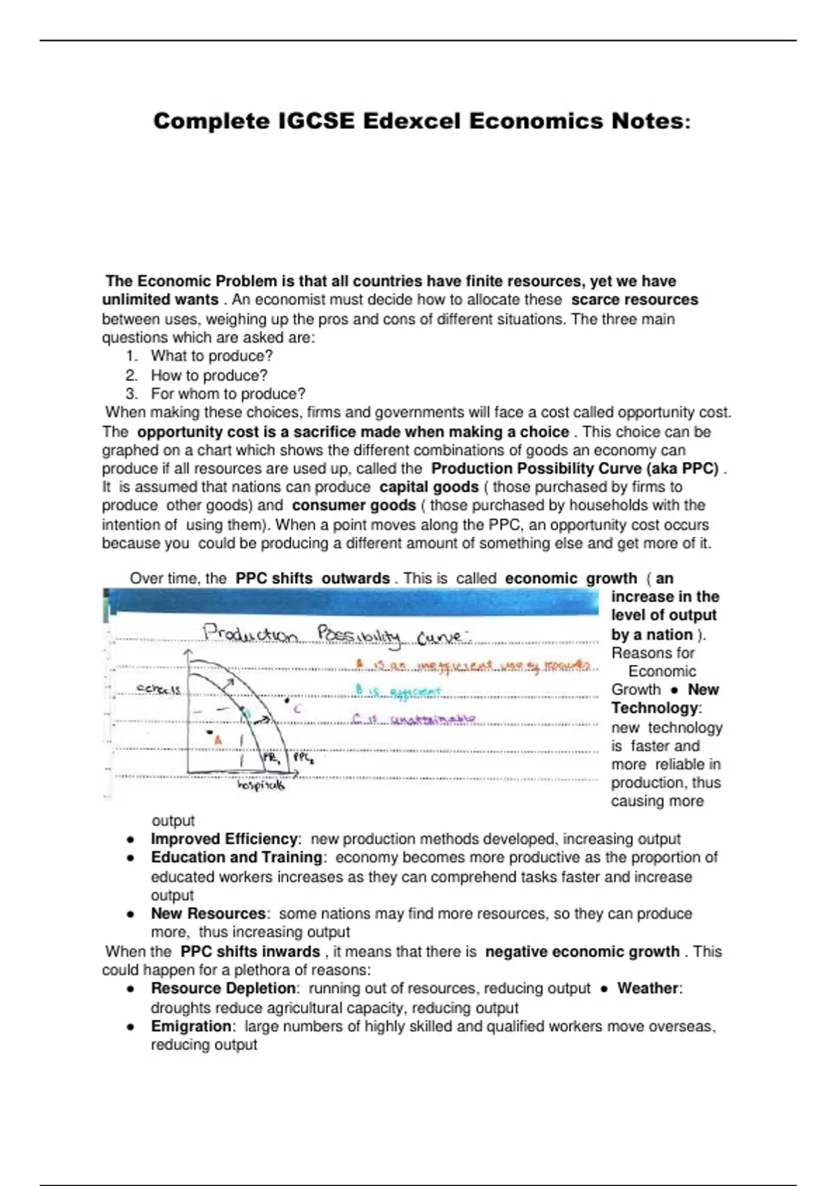 The Economic Problem is that all countries have finite resources, yet we have