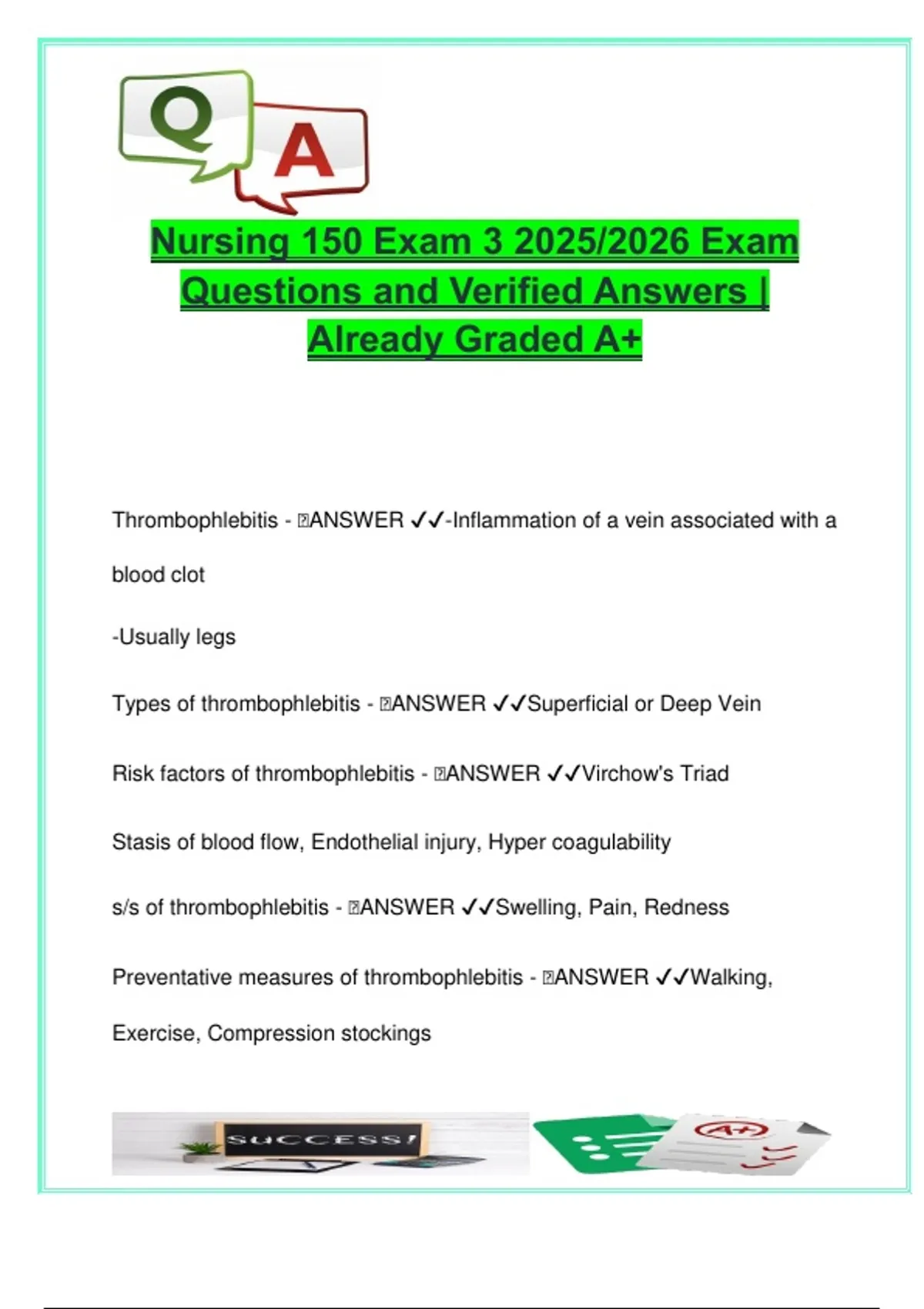Preventative measures of thrombophlebitis - 🧠ANSWER ✔✔Walking,