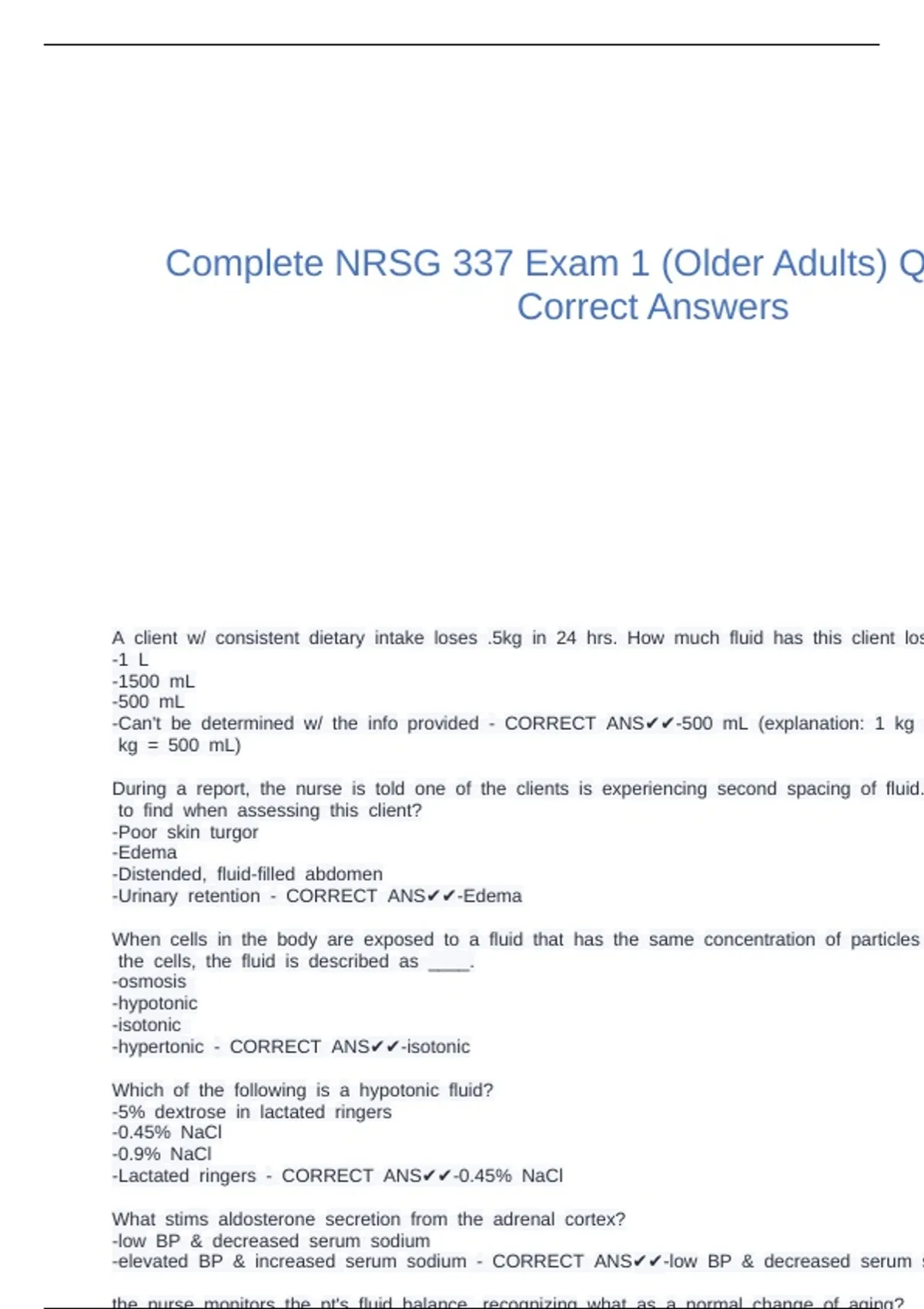Complete NRSG 337 Exam 1 (Older Adults) Q