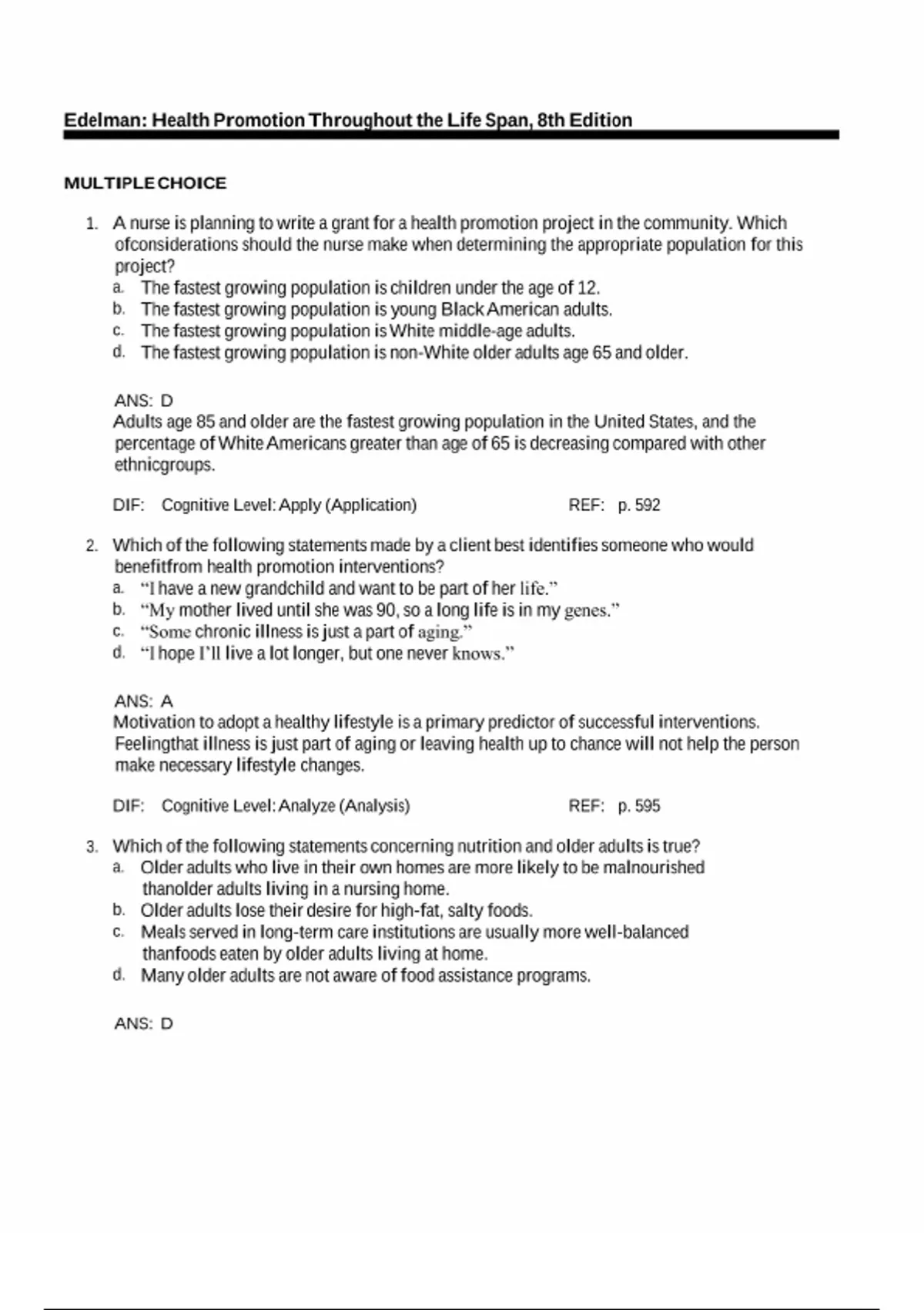 Test bank for health and wellness (health promotion throughout the life span) 8th edition by Carole Lium Edelman