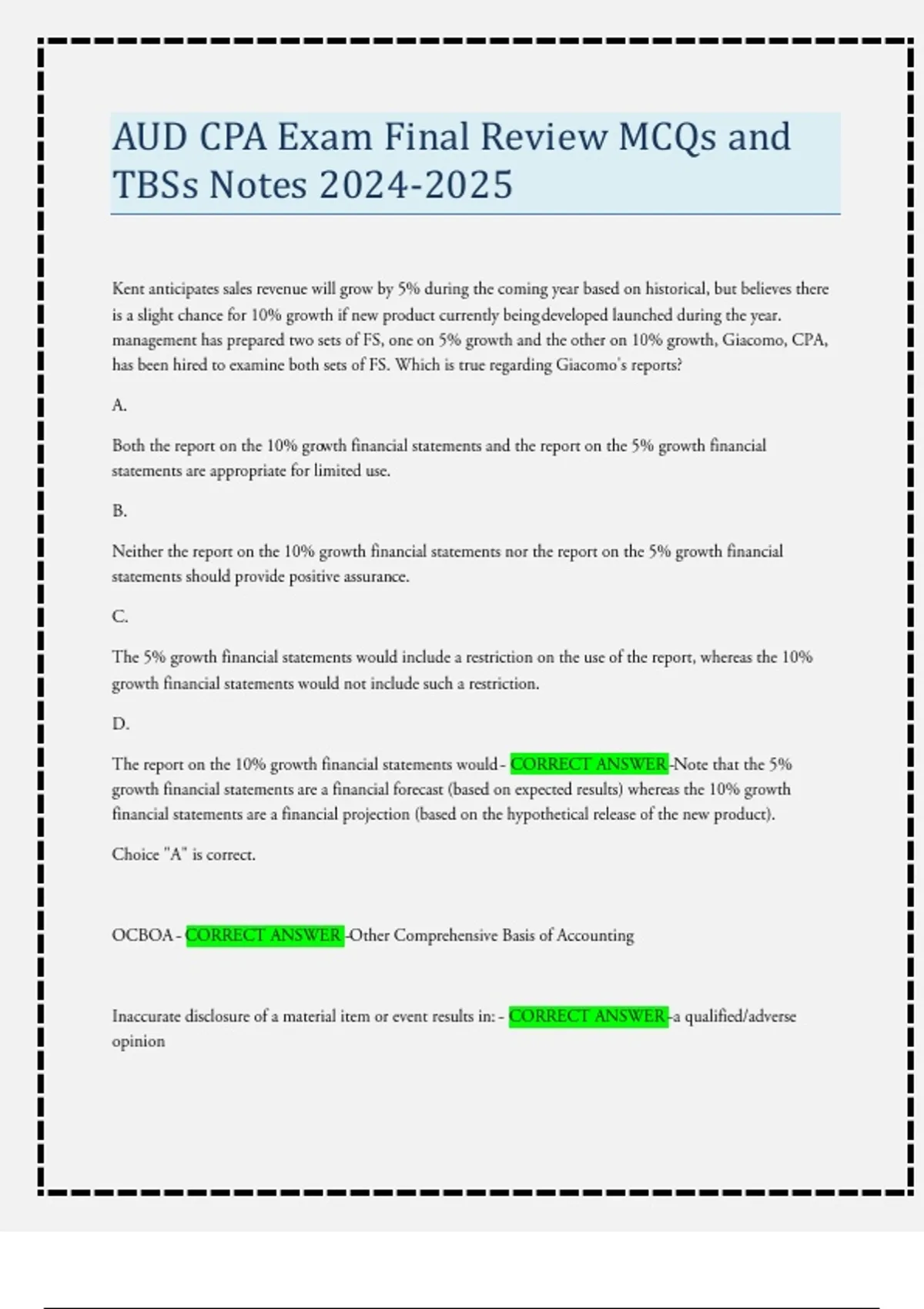 AUD CPA Exam Final Review MCQs and TBSs Notes