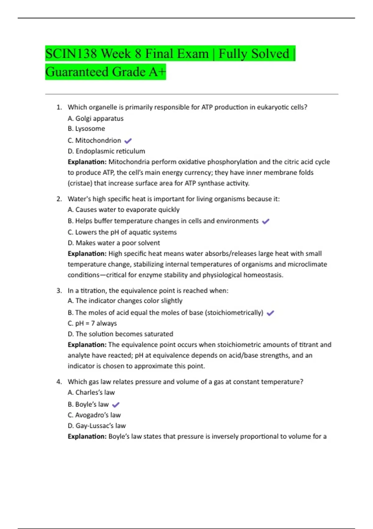 3. In a titration, the equivalence point is reached when: