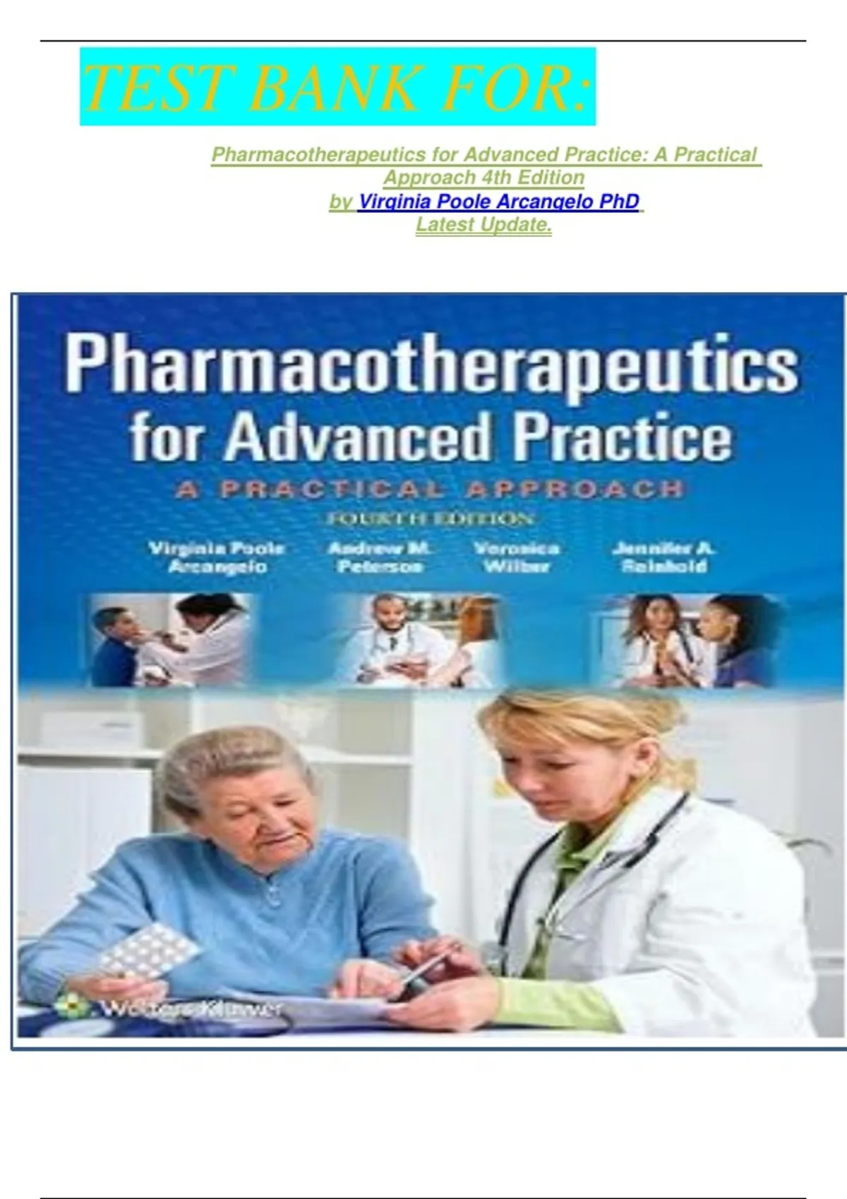 TEST BANK FOR: Pharmacotherapeutics for Advanced Practice: A Practical Approach 4th Edition by Virginia Poole Arcangelo PhD Latest Update.