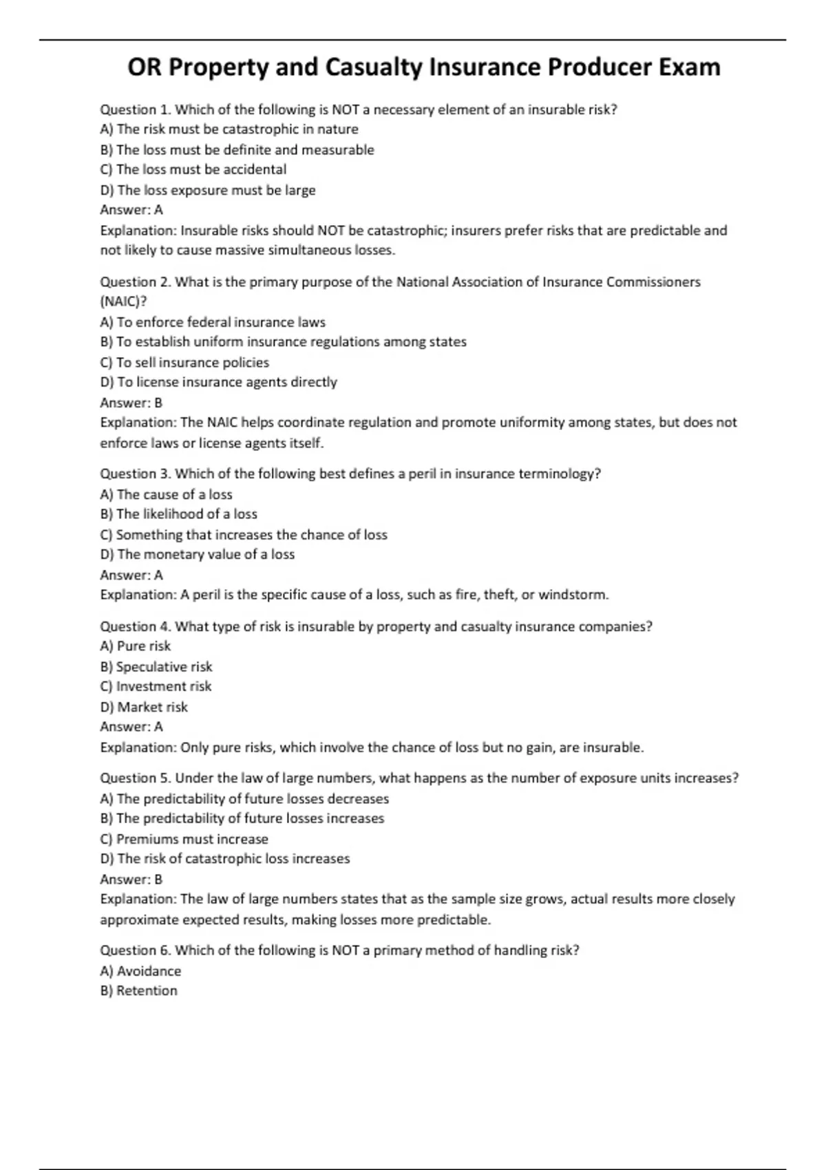 The P&C Exam certifies producers to sell both property and casualty policies. It covers homeowners, auto, liability, workers’ compensation, commercial property, business liability, and risk management. Licensed producers serve individuals and businesses with a wide range of insurance products in compliance with Oregon laws.