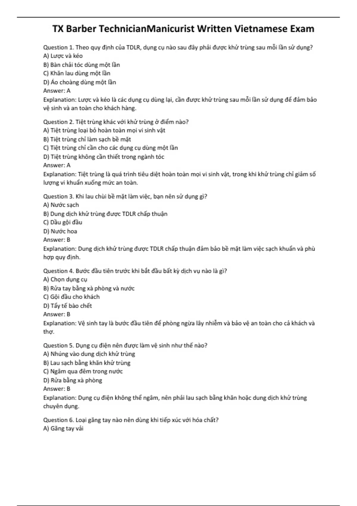 TX Barber TechnicianManicurist Written Vietnamese Exam