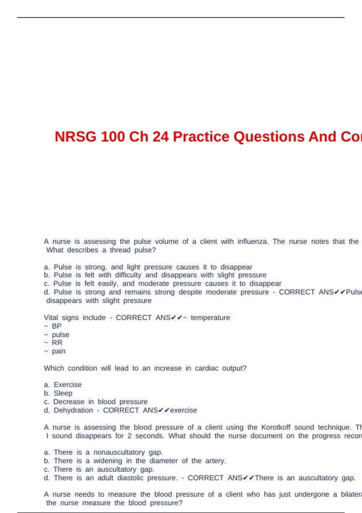 d. cThere cis can cadult cdiastolic cpressure. c- cCORRECT cANS✔✔There cis can causcultatory cgap.