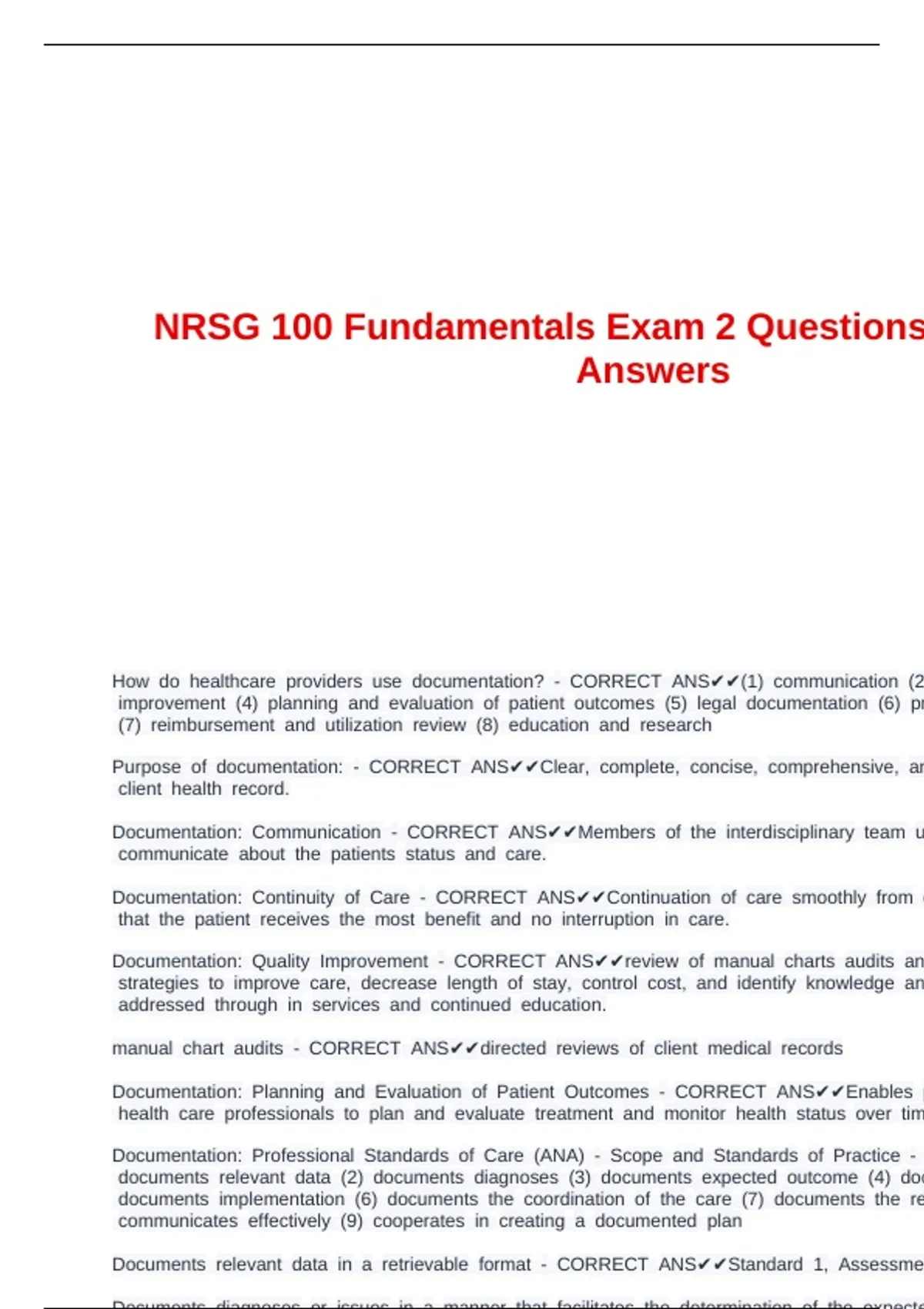 Documentation: cQuality cImprovement c- cCORRECT cANS✔✔review cof cmanual ccharts caudits can