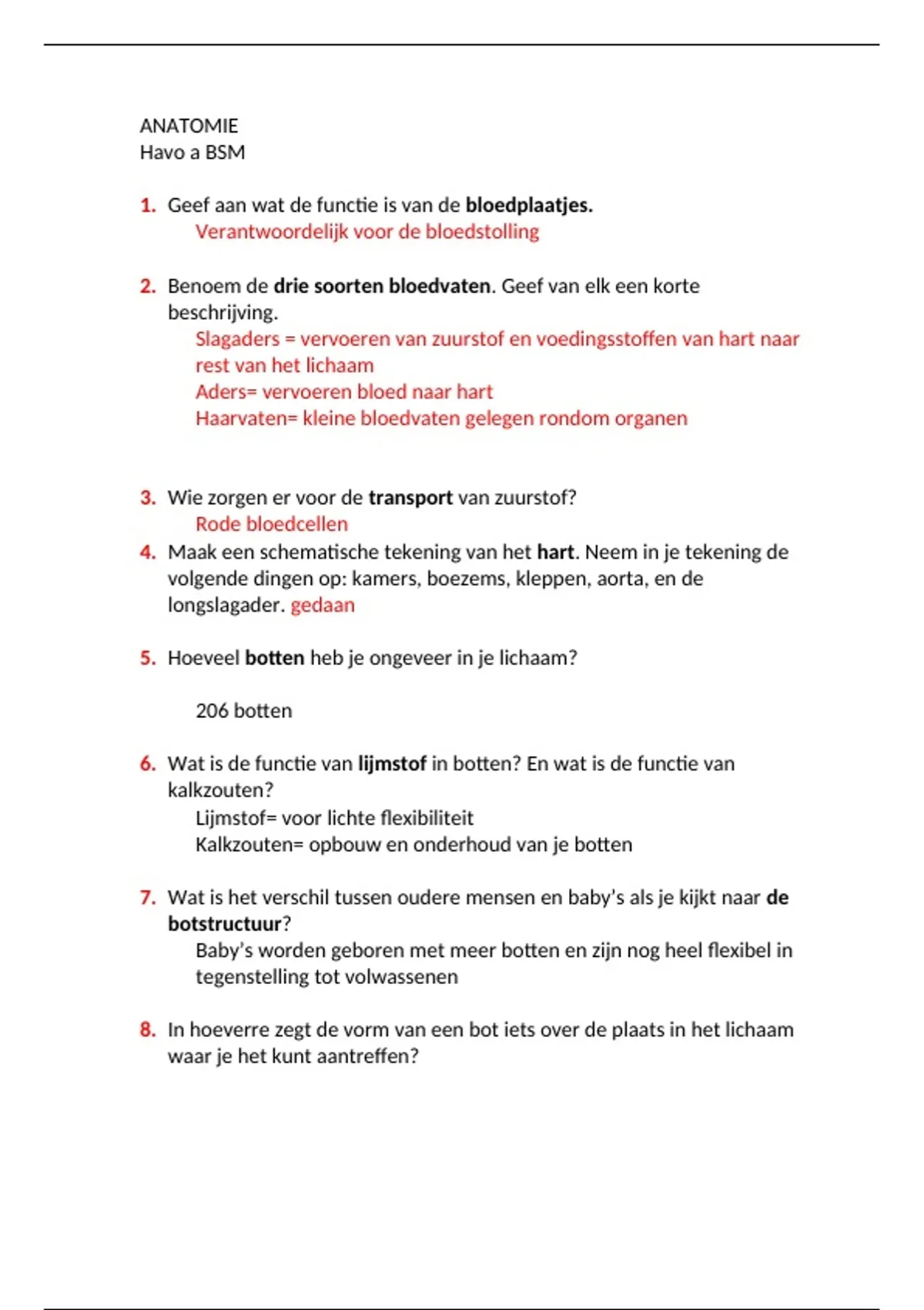 Samenvatting oefenvragen over anatomie