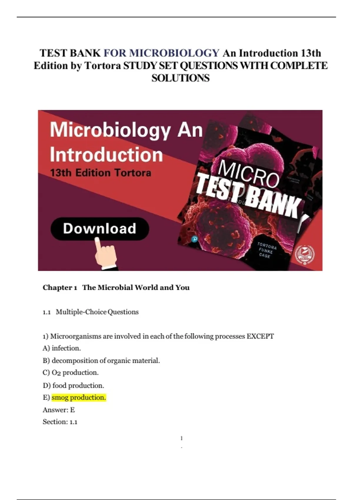 TEST BANK FOR MICROBIOLOGY An Introduction 13th