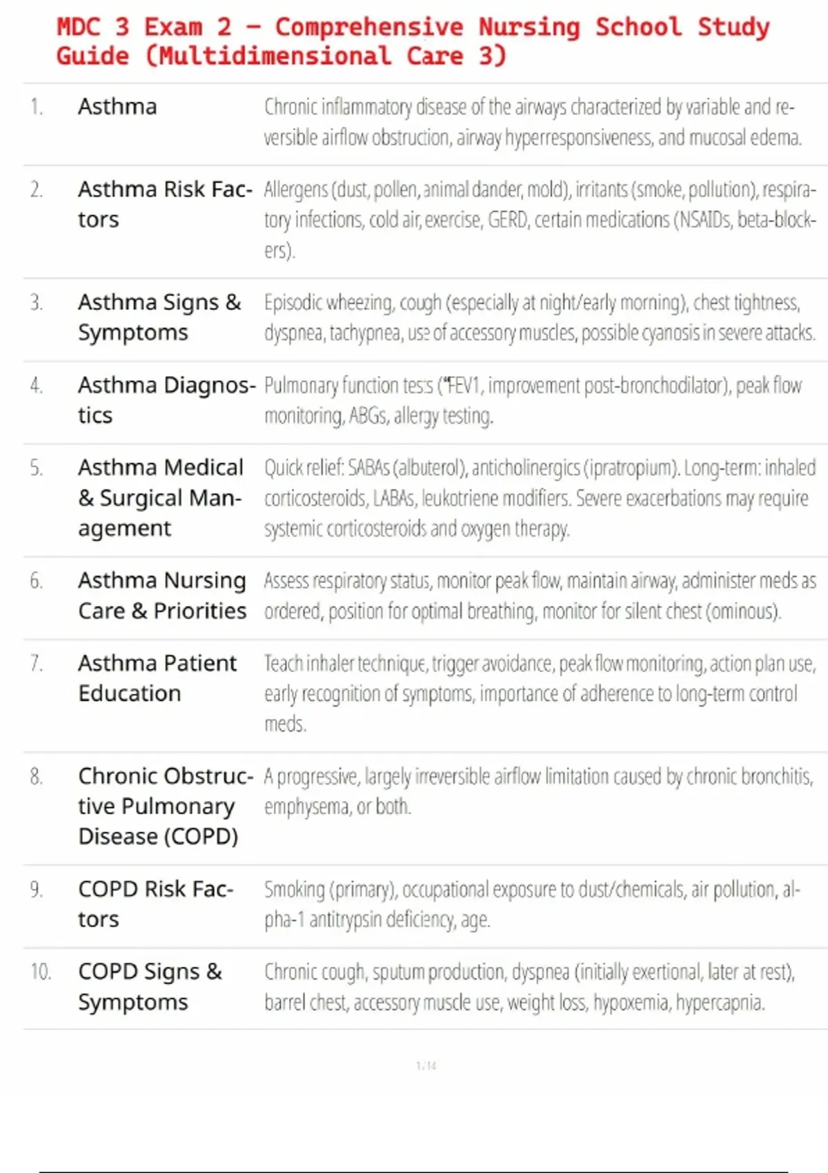 MDC 3 Exam 2 – Comprehensive Nursing School Study Guide (Multidimensional Care 3)