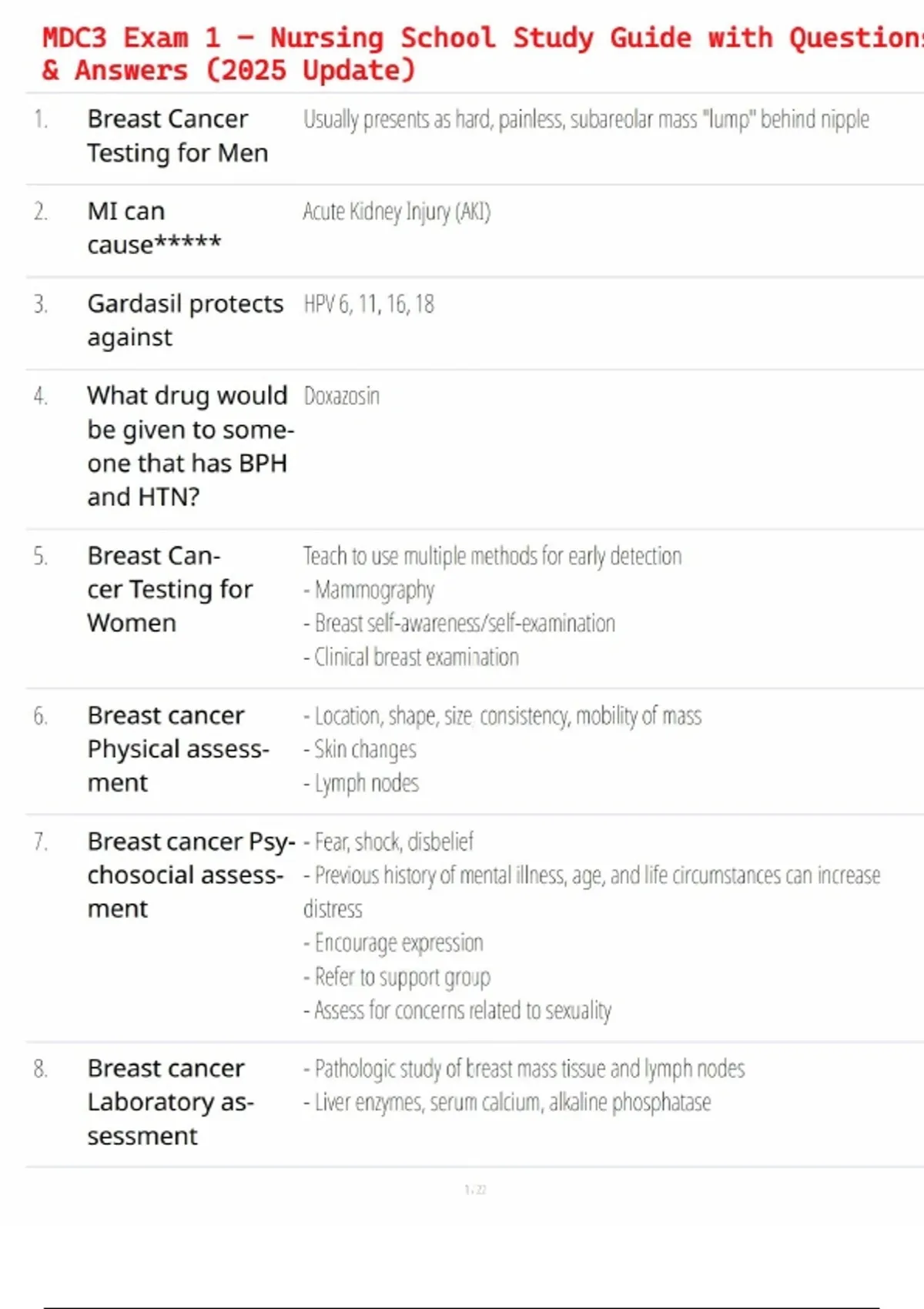 MDC3 Exam 1 – Nursing School Study Guide with Questions & Answers (2025 Update)