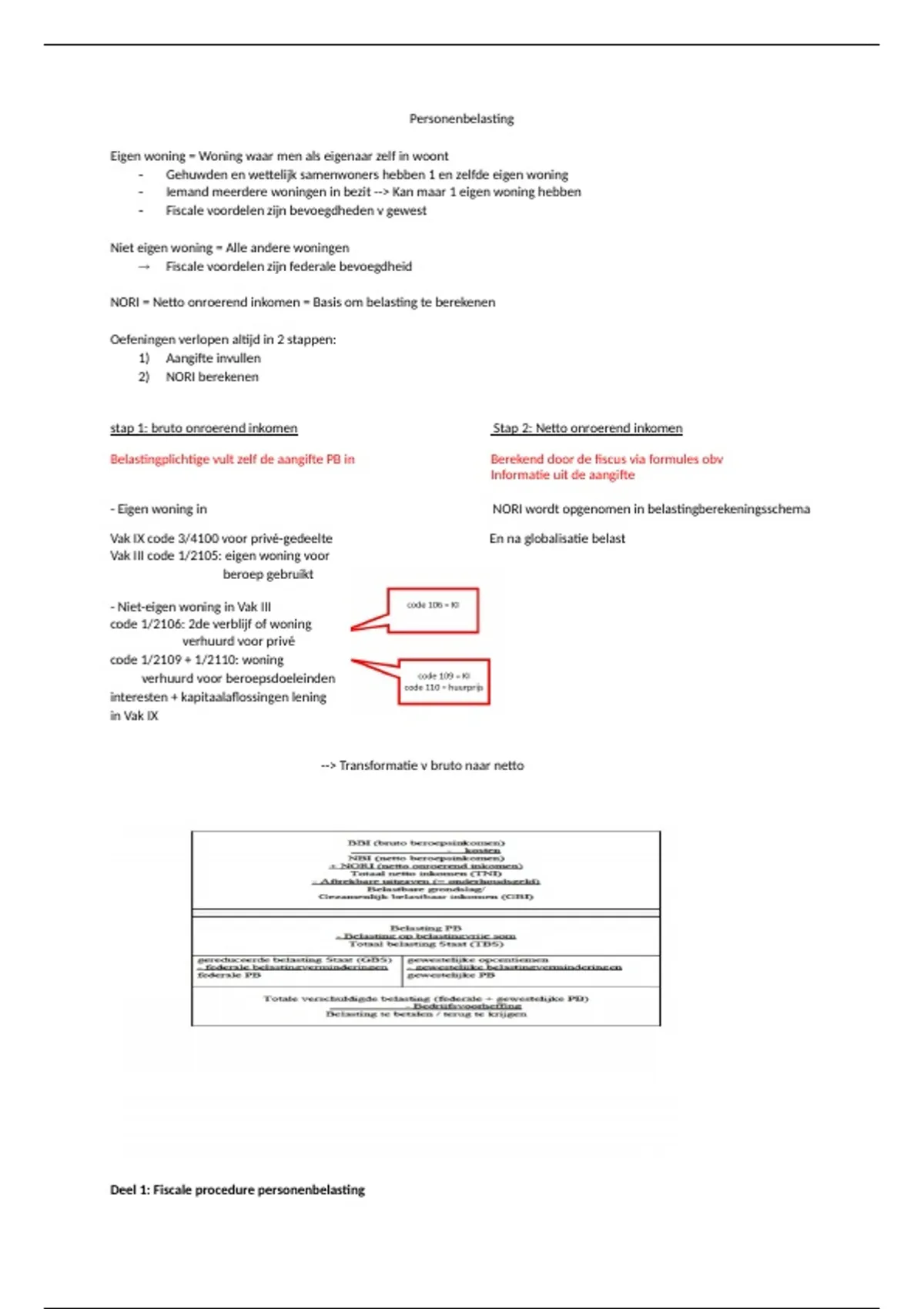 Vak IX code 3/4100 voor privé-gedeelte En na globalisatie belast