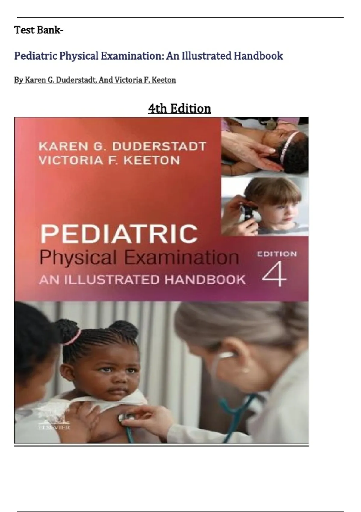 Test Bank For Pediatric Physical Examination: An Illustrated Handbook 4th Edition by, Karen G. Duderstadt. (All Chapters included)
