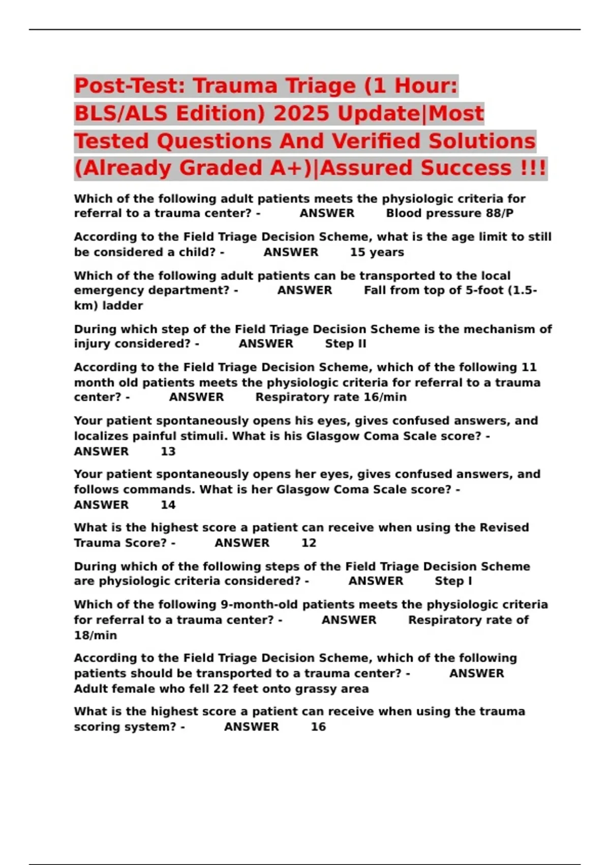 referral to a trauma center? - ANSWER Blood pressure 88/P