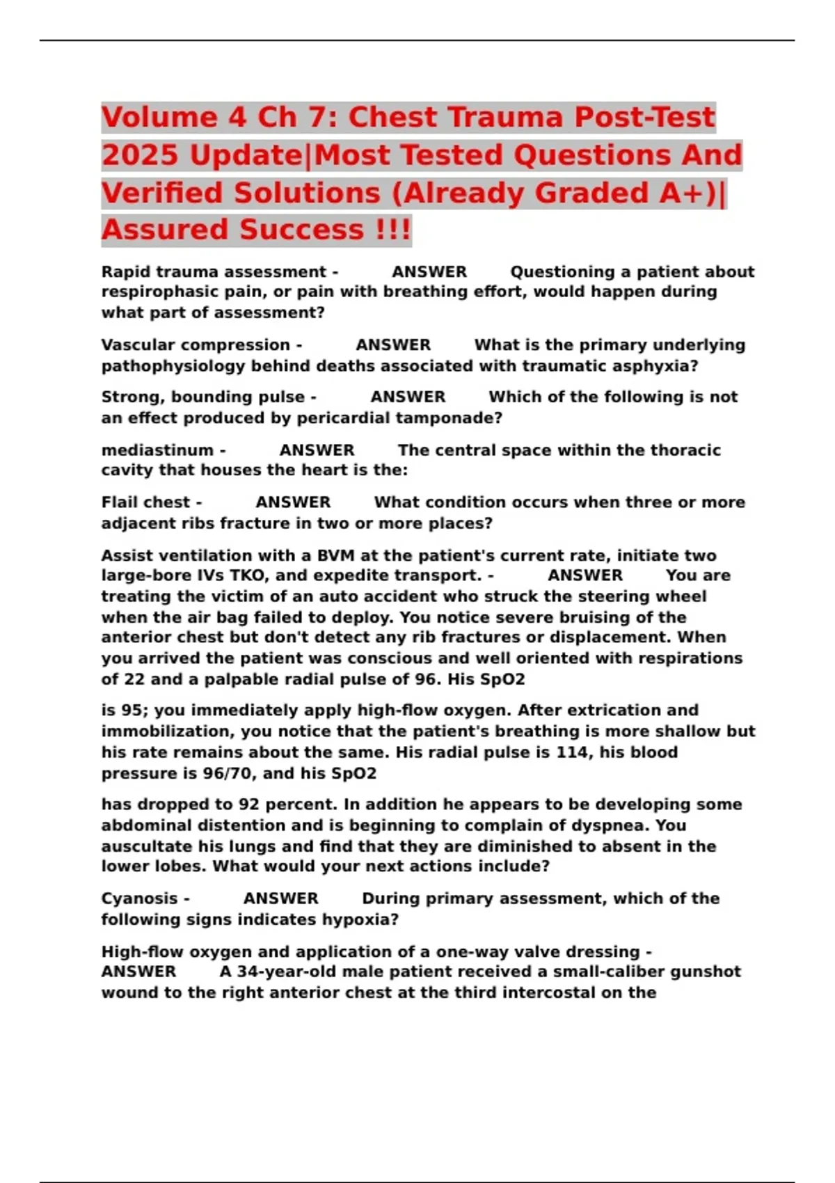 Volume 4 Ch 7: Chest Trauma Post-Test
