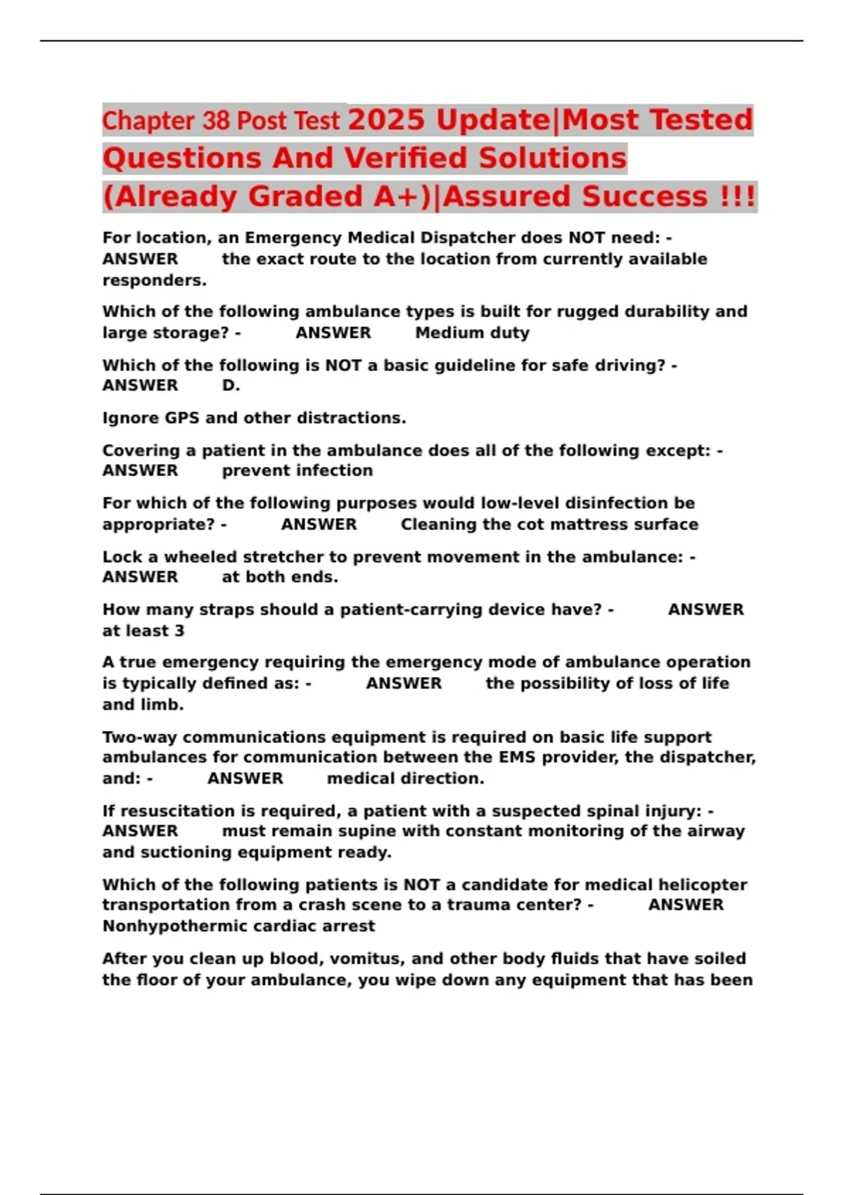 Chapter 38 Post Test 2025 Update|Most Tested Questions And Verified Solutions (Already Graded A+)|Assured Success !!!