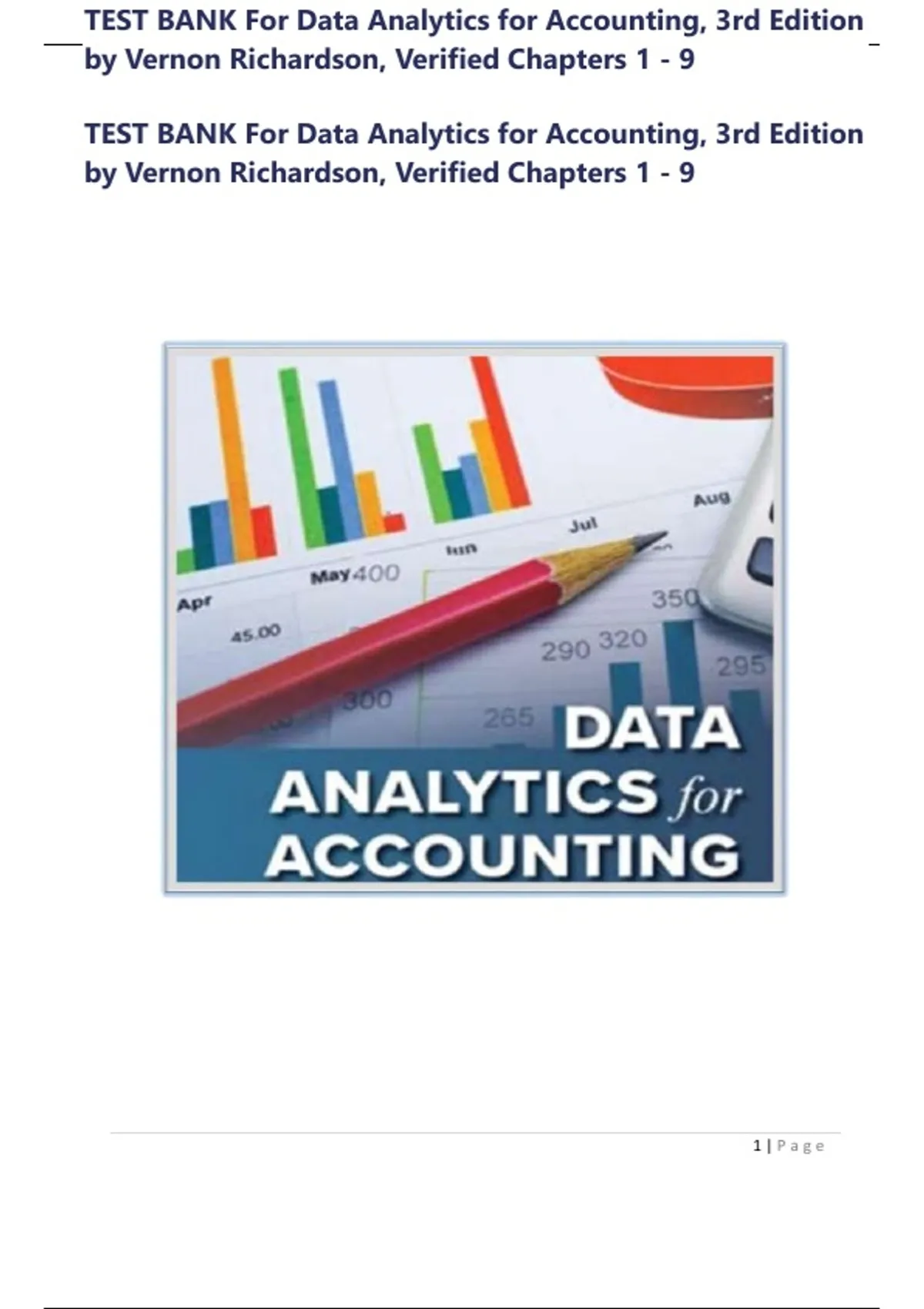 , TEST BANK For Data Analytics for Accounting, 3rd Edition
