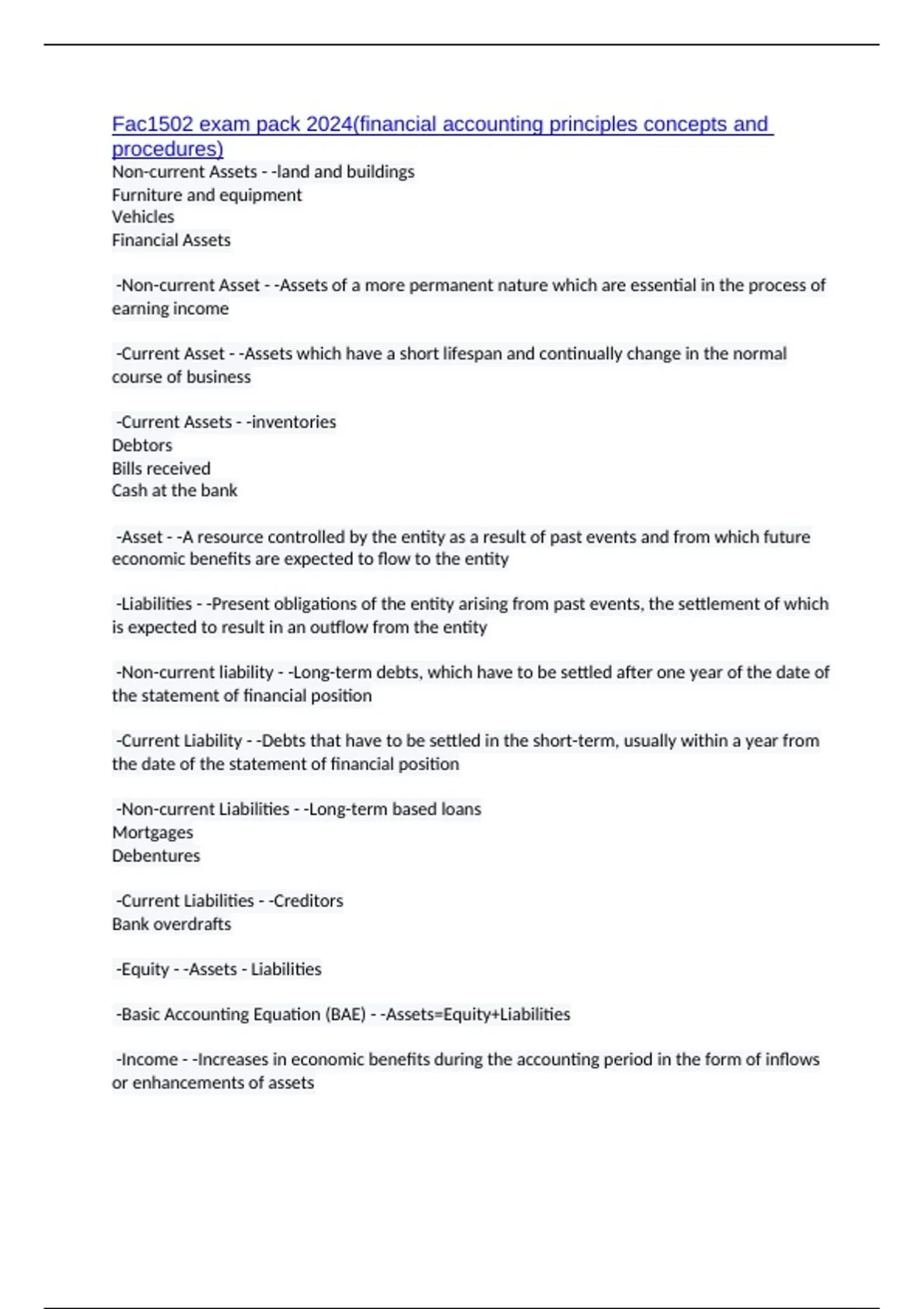 Fac1502 exam pack 2024(financial accounting principles concepts and procedures)